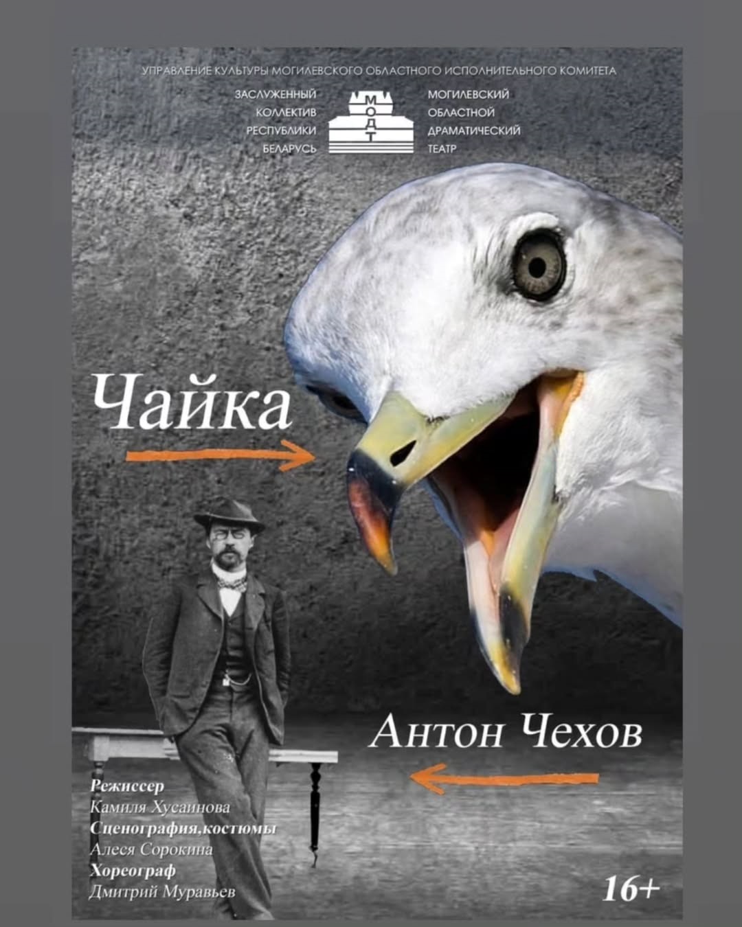 Премьера спектакля «Чайка» по мотивам пьесы А.П.Чехова состоится в Могилевском областном драматическом театре 11 и 12 апреля. Над постановкой работает режиссер Камиля Хусаинова.