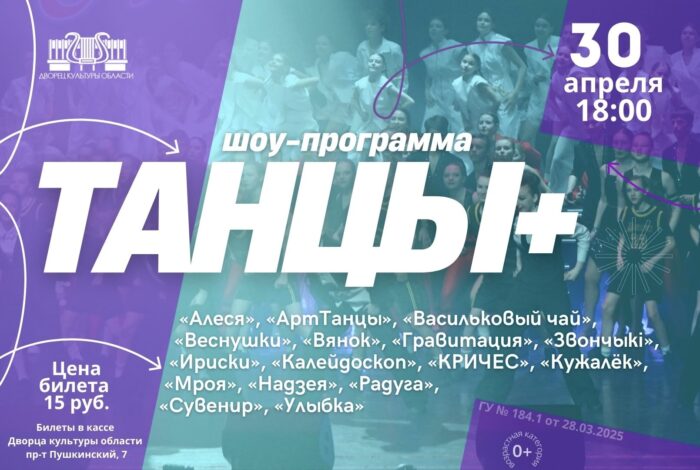 Шоу-программа «Танцы+» пройдет в Могилеве 30 апреля. Свои новые постановки на сцене Дворца культуры области представят известные хореографические коллективы Могилевщины.