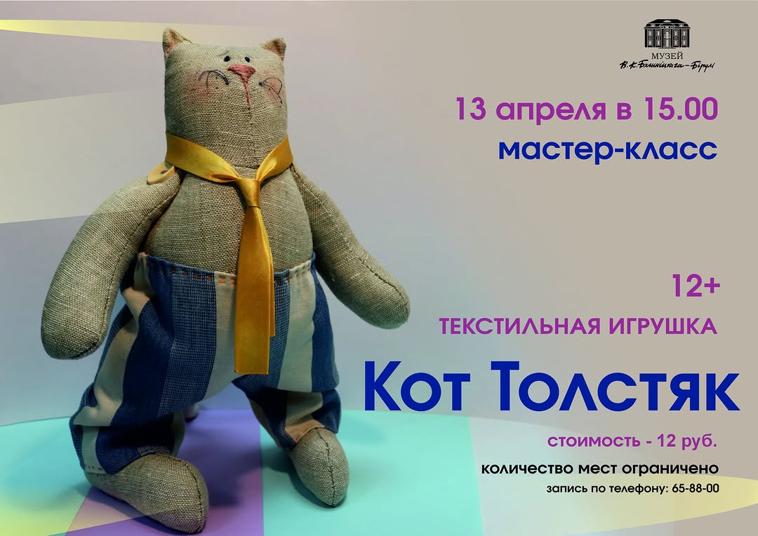Так, в субботу, 12 апреля, горожан приглашают на мастер-класс по акварельной живописи для детей «Курочка Ряба», а в воскресенье, 13 апреля, — на мастер-класс по изготовлению текстильной игрушки «Кот Толстяк».