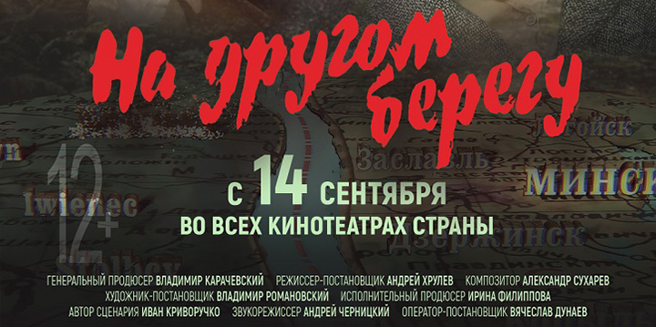 Могилевские кинотеатры «Родина», «Чырвоная Зорка», «Космос» 14 сентября приглашают на премьерный показ исторической драмы «На другом берегу» (Беларусь, 2023, 115 мин., 12+) производства Национальной киностудии «Беларусьфильм».