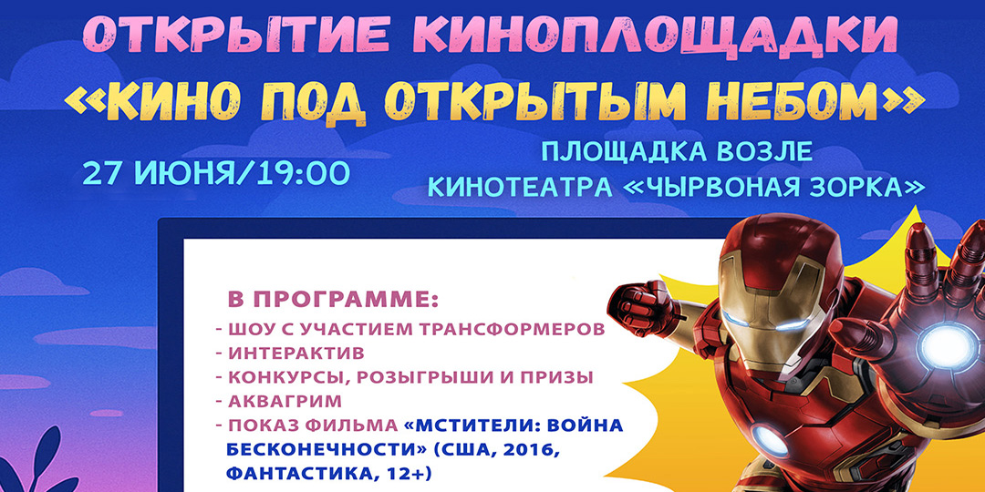Открытие площадки «Кино под открытым небом» пройдет возле кинотеатра «Чырвоная Зорка» в Могилеве 27 июня в 19:00. Об этом сообщили на предприятии «Киновидеопрокат».