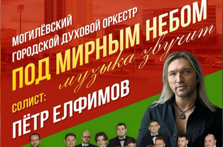 Сольный концерт Петра Елфимова и городского духового оркестра (дирижер Александр Городков) пройдет в Могилеве 2 июля. Программа «Под мирным небом музыка звучит» будет представлена на площади Единства.