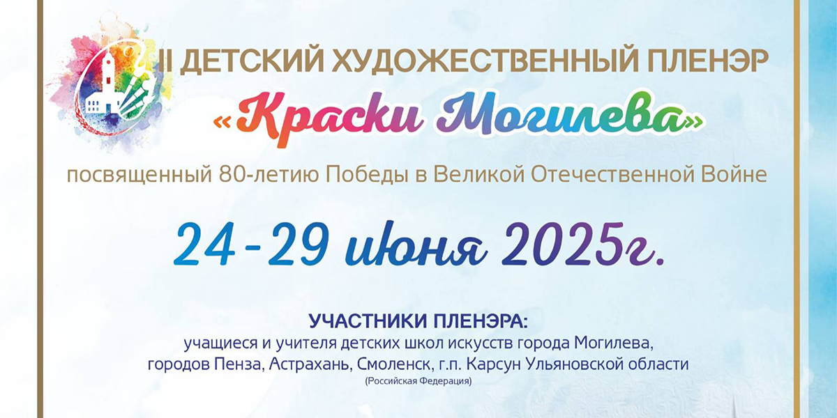 С 24 по 29 июня в областном центре пройдет II детский художественный пленэр «Краски Могилева», сообщили в управлении культуры горисполкома. Творческий проект посвящен 80-й годовщине Победы советского народа в Великой Отечественной войне.