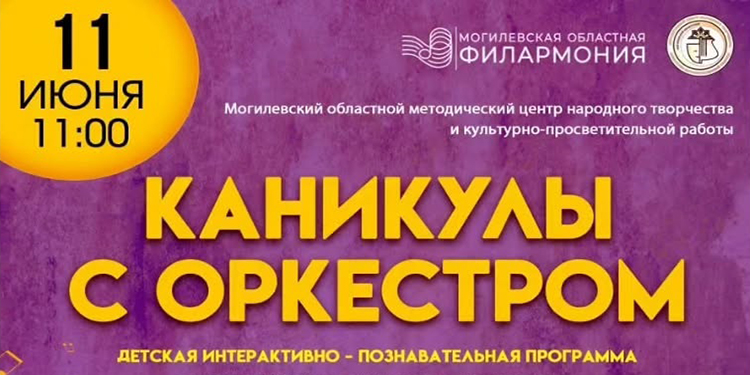 Детскую интерактивно-познавательную программу «Каникулы с оркестром» готовит для юных могилевчан Заслуженный коллектив Республики Беларусь оркестр народных инструментов имени народного артиста Беларуси Леонида Иванова (художественный руководитель и главный дирижер Денис Черта).
