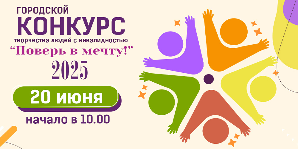 Городской конкурс творчества людей с инвалидностью «Поверь в мечту!» пройдет 20 июня в Могилеве. Мероприятие состоится на сцене филиала городского Центра культуры и досуга (ул.Первомайская, 117; бывший ДК железнодорожников).