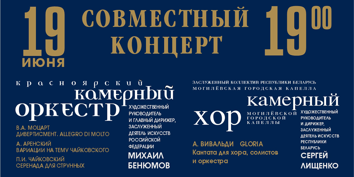 Красноярский камерный оркестр и камерный хор Могилевской городской капеллы готовят совместный концерт. Он пройдет 19 июня в областном центре творчества (пр-т Мира, 23).