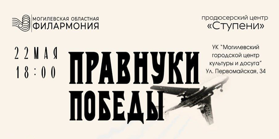 Отчетный концерт «Правнуки Победы» готовит продюсерский центр «Ступени». Он состоится 22 мая в 18:00 на сцене городского Центра культуры и досуга (ул. Первомайская, 34) и будет приурочен к 80-летию освобождения Беларуси от немецко-фашистских захватчиков.