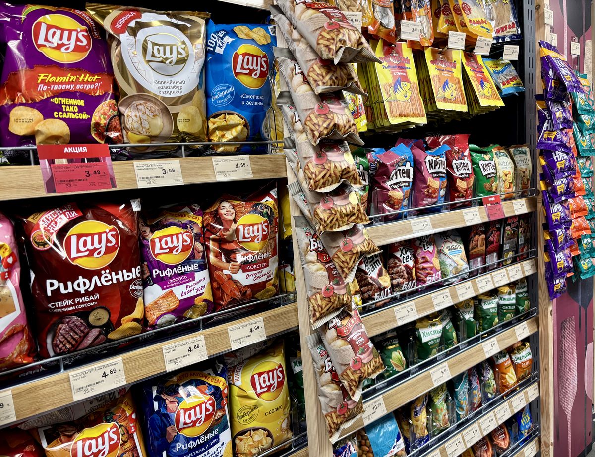 Цены приятно удивят: сыровяленая колбаса Sammarinese salumi стоит 11,99 рубля за упаковку в 100 г, копченый сыр «Сибирский барс» — 6,49 рубля за 100 г. Выгодные цены установлены и на сырокопченые колбасы: «Черкизово Салями Астория» — 3,99 за 85 г, итальянская «Classic Pемит» — 4,49 за 70 г. Ржаные сухарики «Крутец» предлагают по 1,15 рубля за пачку в 100 г, крекер Averton Crazy Fish — 2,09 за 80 г. Чипсы Lays можно взять по 3,49 за пачку в 105 г, сушеный минтай «Рыбка Астраханкина» — 2,39 за 40 г.
