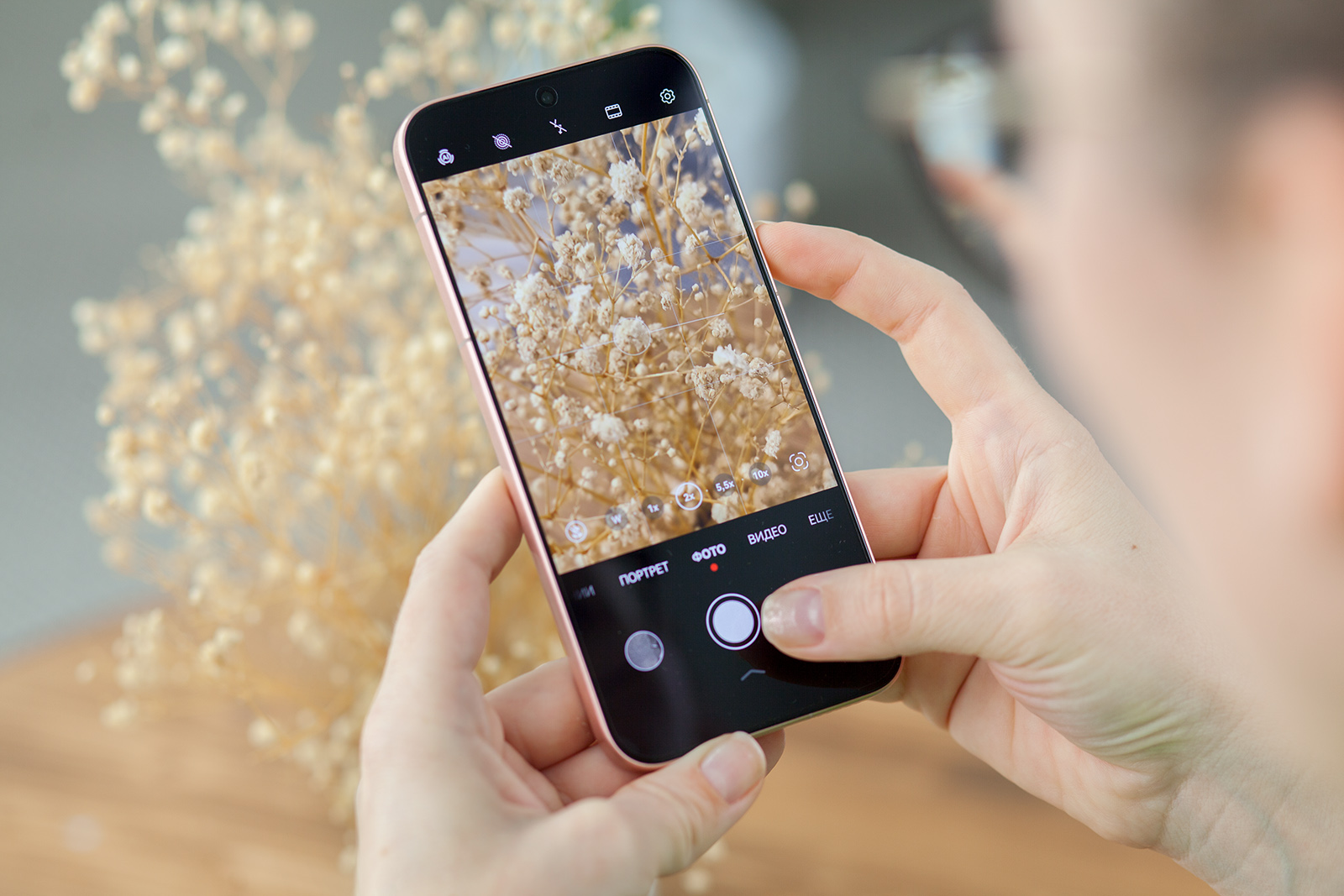 Перископический телеобъектив на 12 МП поддерживает 5,5-кратный оптический зум, позволяя приближать удаленные объекты без потери качества. Для максимального охвата пространства предусмотрен сверхширокоугольный объектив на 13 МП.