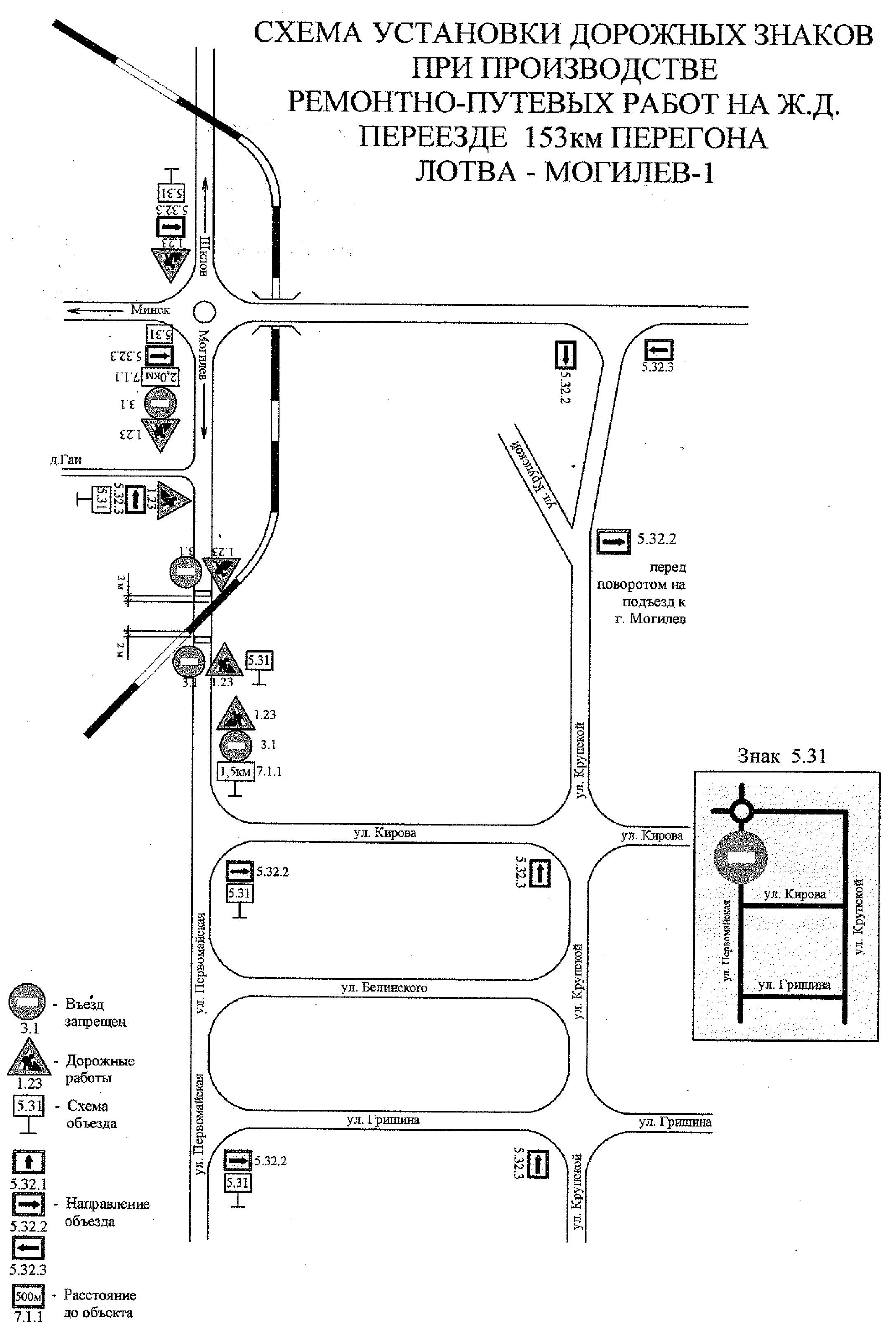 3 сентября 7.00-19.00 будет перекрыто движение транспорта по улице Первомайской ж.д. переезд153 км. перегон Могилев-1-Лотва.