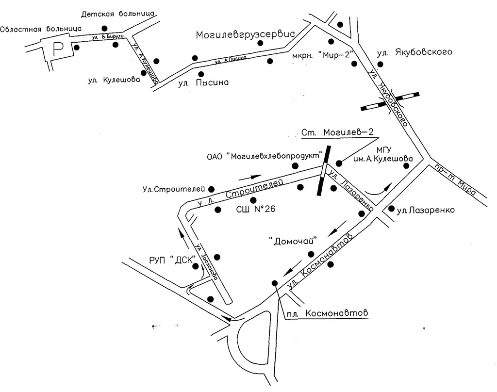 Осуществляться перевозка пассажиров будет по следующей схеме движения: Областная больница – ул. Бялыницкого -Бирули - ул. А.Кулешова - ул. А.Пысина - ул. Якубовского - ул. Космонавтов - дублер Минского шоссе - ул. Заслонова - ул. Строителей - ул. Лазаренко - ул. Космонавтов - ул. Якубовского - ул. А.Пысина - ул. А.Кулешова - ул. Бялыницкого-Бирули - Областная больница.