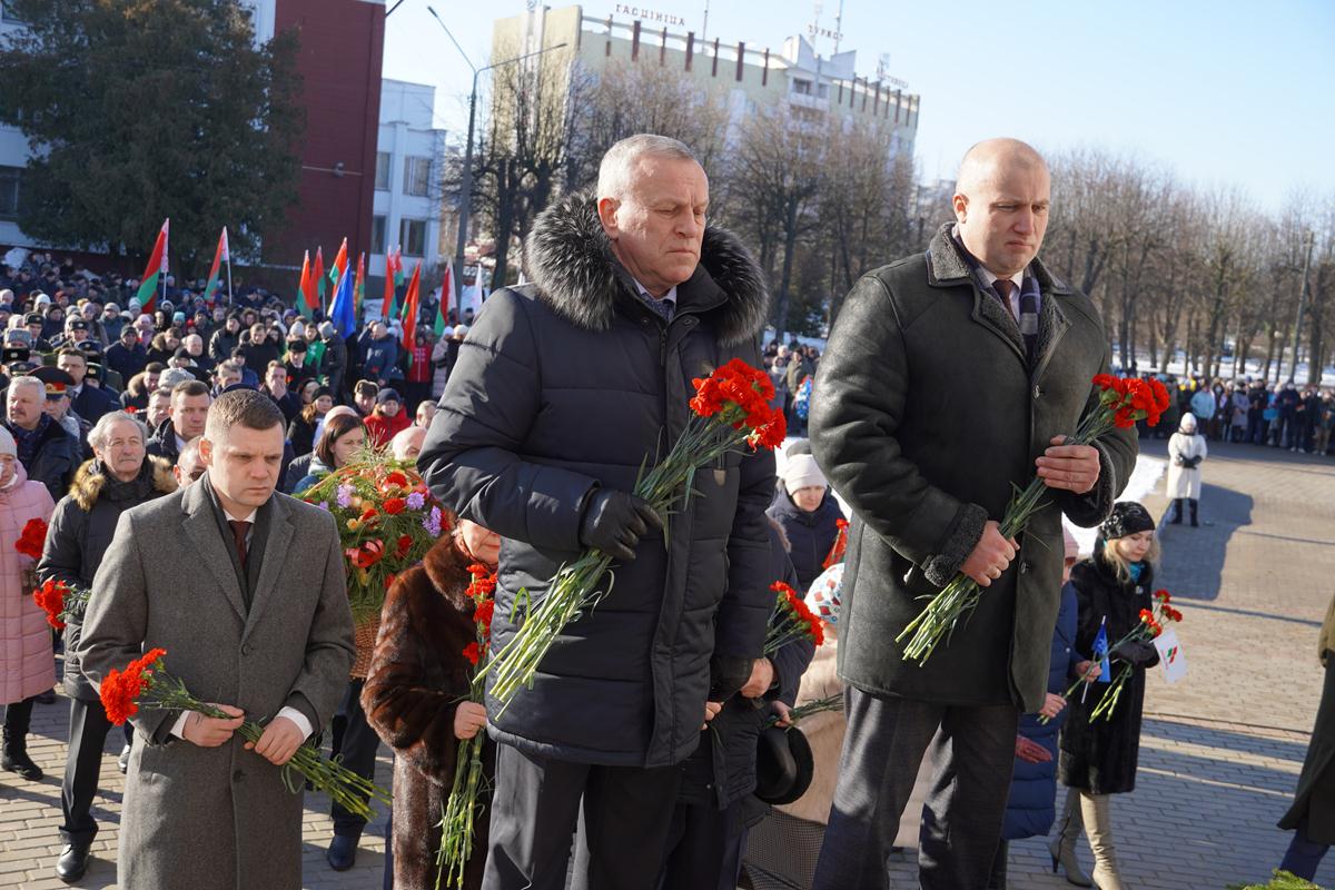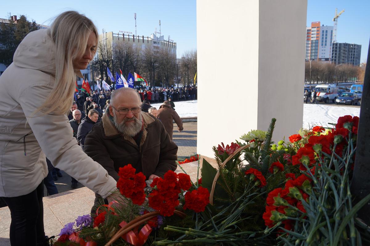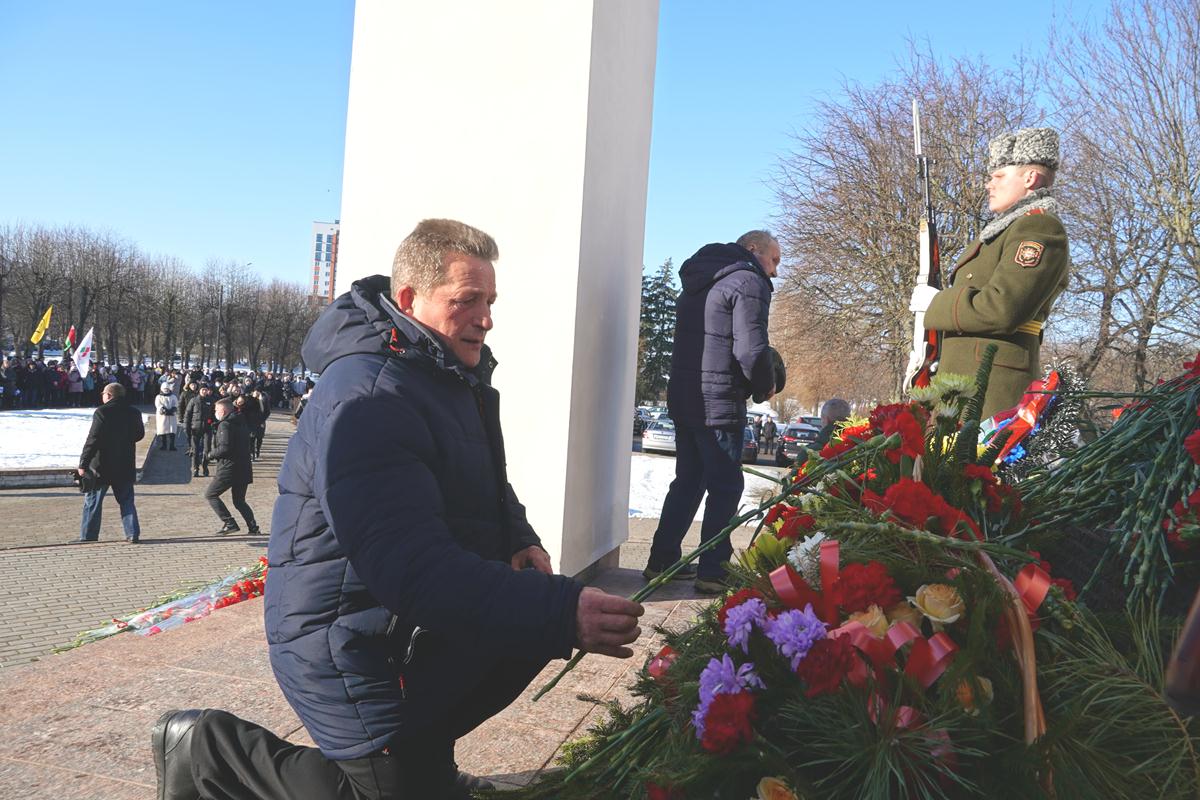 Участники митинга почтили память погибших солдат минутой молчания и возложили цветы к подножию монумента, а артисты Могилева исполнили несколько композиций, посвященных событиям в Афганистане.
