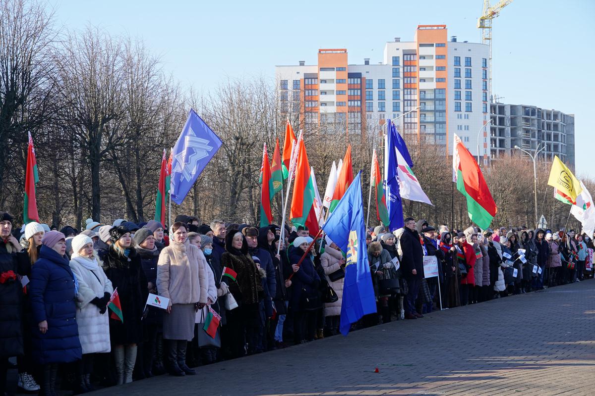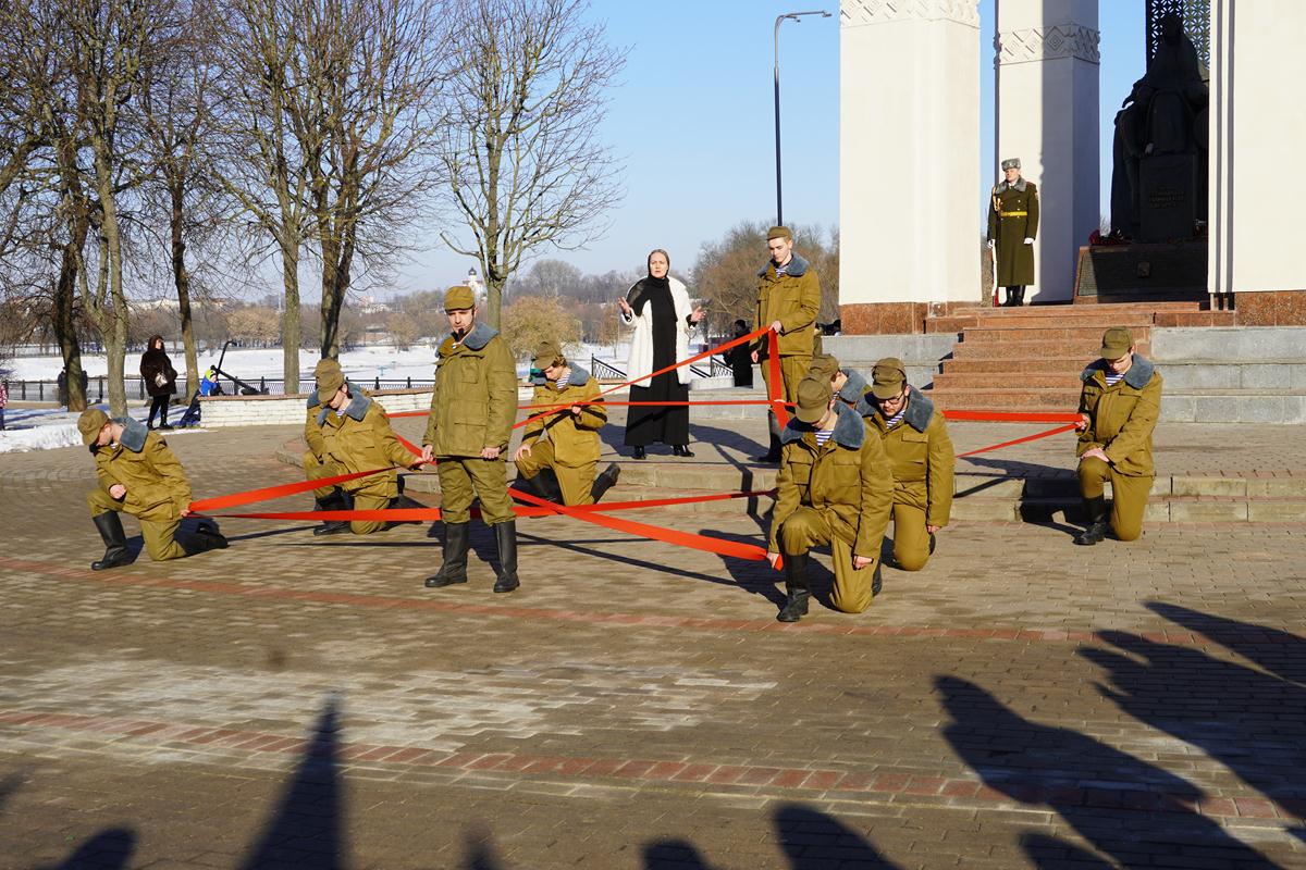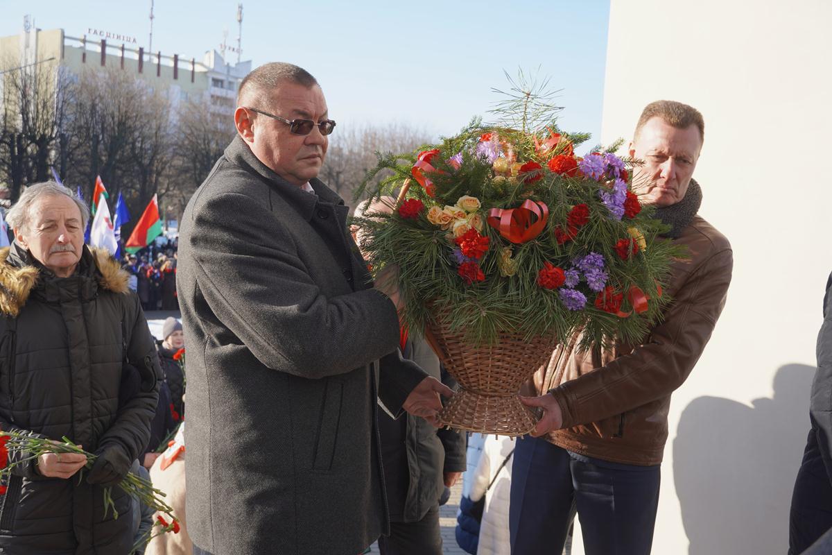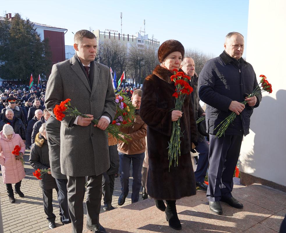 Участники митинга почтили память погибших солдат минутой молчания и возложили цветы к подножию монумента, а артисты Могилева исполнили несколько композиций, посвященных событиям в Афганистане.