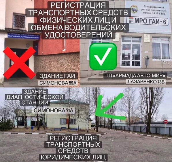 Регистрация транспорта юридических лиц будет осуществляться на диагностической станции транспортных средств УВД Могилевского облисполкома по адресу: г. Могилев, ул. Симонова, 71А.