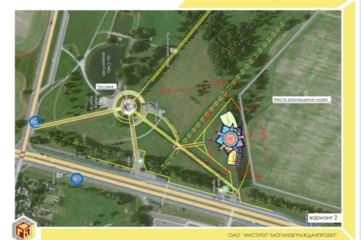 На сегодняшний день, согласно эскизному проекту, комплекс предлагают выстроить в форме ордена Отечественной войны. С 30 мая поучаствовать в обсуждении проекта здания будущего музея смогут все жители области, которым небезразлична история малой родины. Им предлагают до 23 июня направлять свои замечания и предложения в отдел архитектуры и строительства Могилевского райисполкома по телефону или на электронную почту Адрес электронной почты защищен от спам-ботов. Для просмотра адреса в вашем браузере должен быть включен Javascript.. Все заявки будут рассмотрены и обобщены на архитектурно-градостроительном совете.