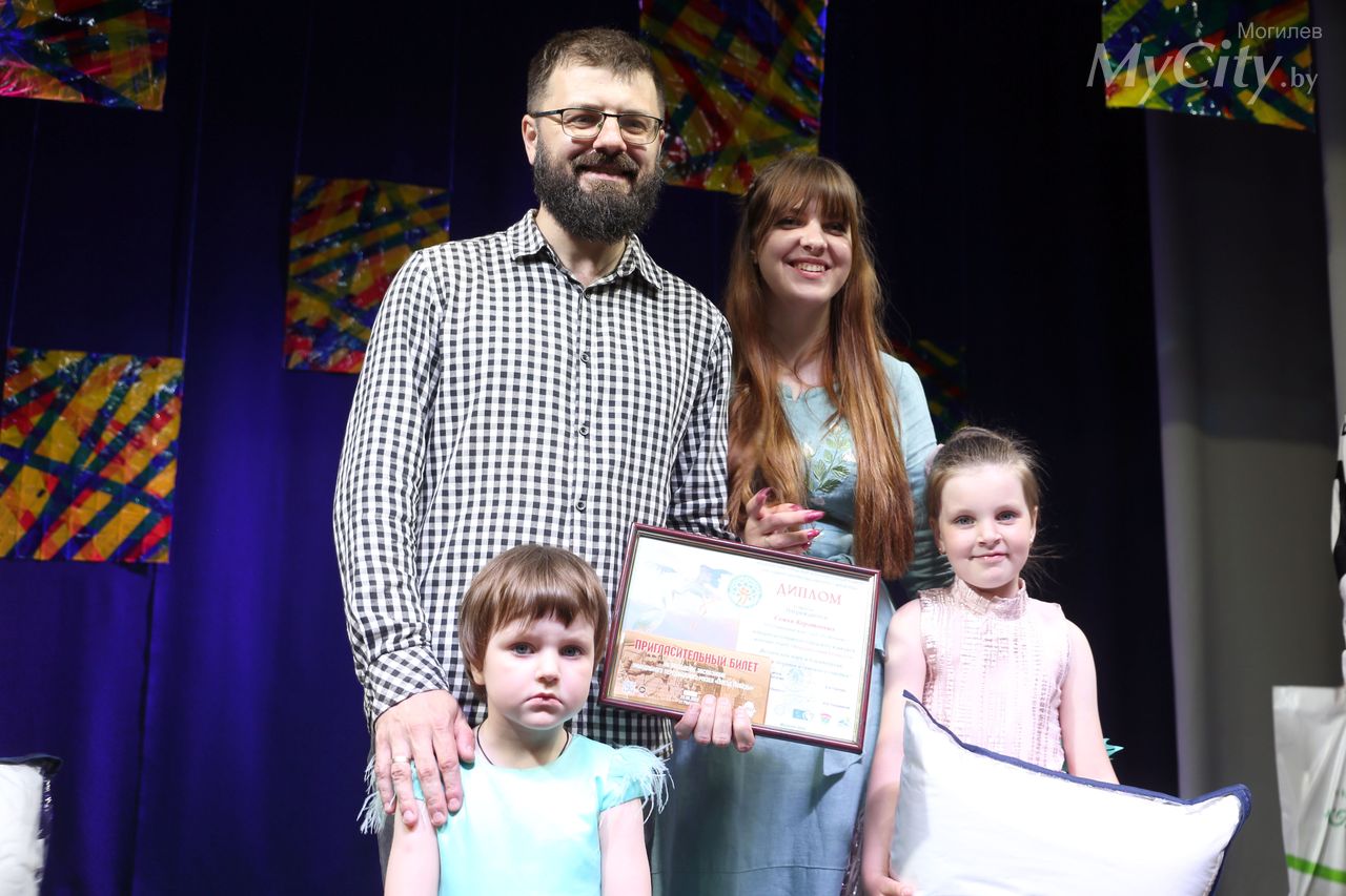 Финал открытого городского конкурса «Молодая семья Беларуси» прошел в Могилеве. На сцене Центра творчества «Эверест» за победу боролись три семьи: Сергея и Юлии Дубонос (родители воспитывают троих детей – Германа, Давида и Алису), Сергея и Екатерины Шишко (в семье подрастают две дочери – Карина и Кристина) и Артура и Александры Коротеевых (в семье две дочери – Василиса и Таисия).