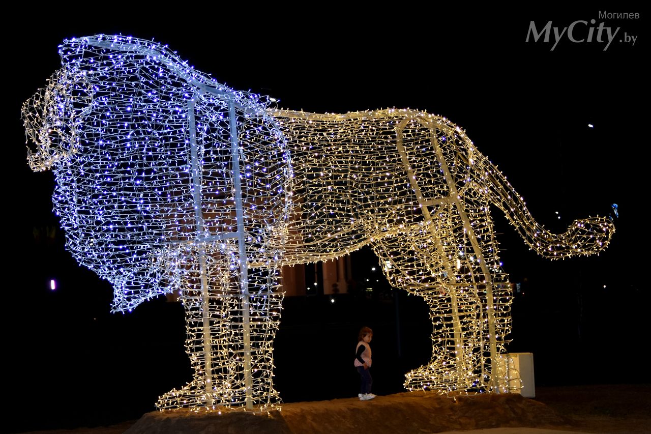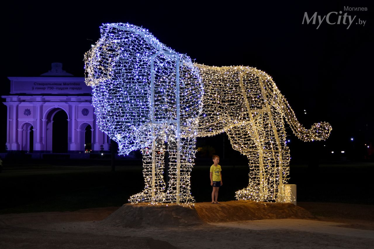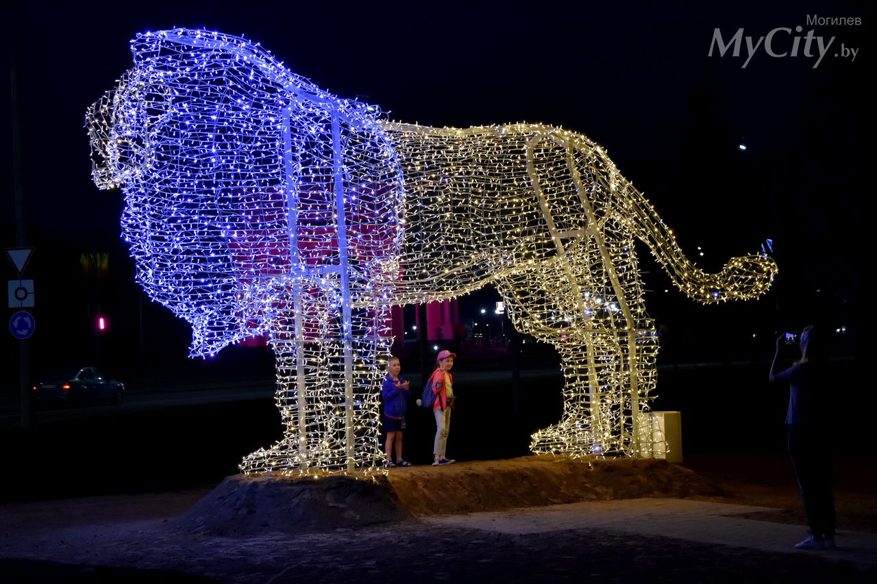К 755-летию Могилева в областном центре установили светодиодную скульптуру льва. Хищник «поселился» в микрорайоне Казимировка недалеко от арки, на въезде в город со стороны Минска. Он уже стал любимцем могилевчан: прохожие с удовольствием делают фото вместе с новым лёвой, который впечатляет своими параметрами.
