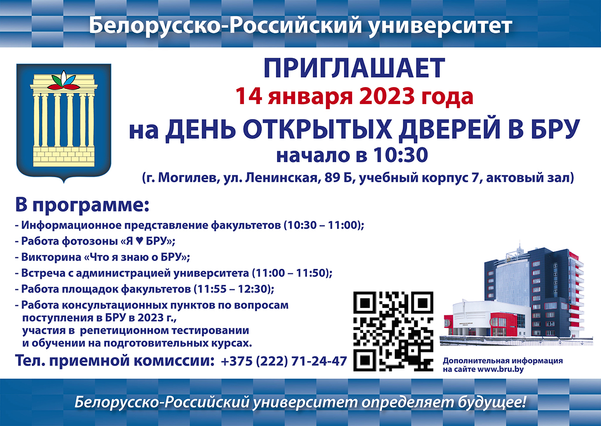 В Белорусско-Российском университете 14 января пройдет день открытых дверей. Об этом сообщается на официальном сайте вуза.