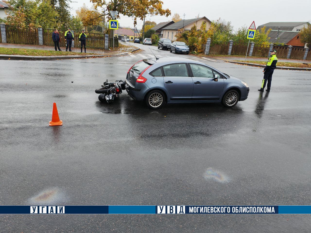 Утром 9 октября вблизи перекрестка улиц Первомайской и Кирова мотоцикл STELS RK 125 под управлением 16-летнего подростка совершил столкновение с остановившимся автомобилем Citroen под управлением 43-летней могилевчанки.