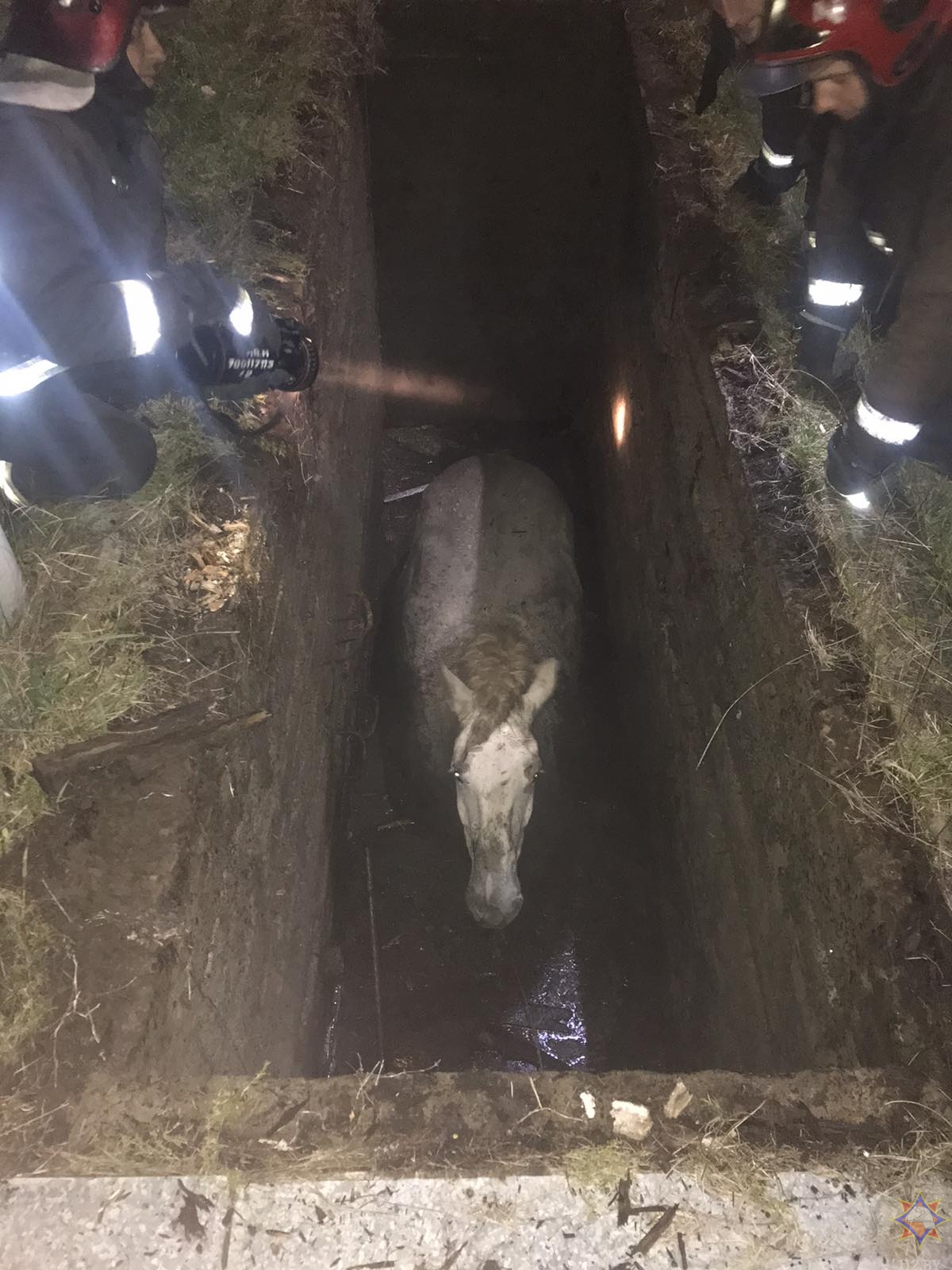 20 октября около половины восьмого вечера спасателей попросили о помощи могилевчане, которые увидели, что лошадь упала в ливневый коллектор на улице Гагарина и самостоятельно выбраться не может.