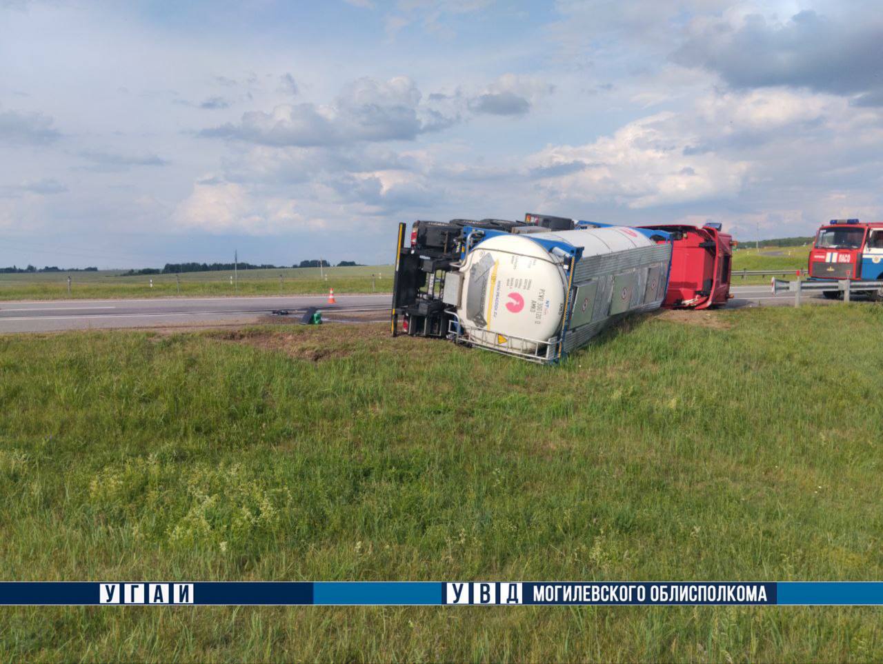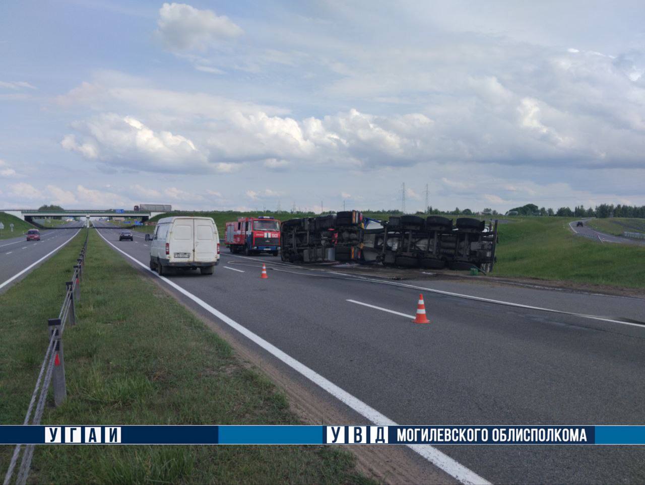 10 июня около 16:00 на 89-ом километре трассы «Минск-Могилев» 53-летний водитель автомобиля МАН не справился с управлением, машина съехала в кювет и опрокинулась.