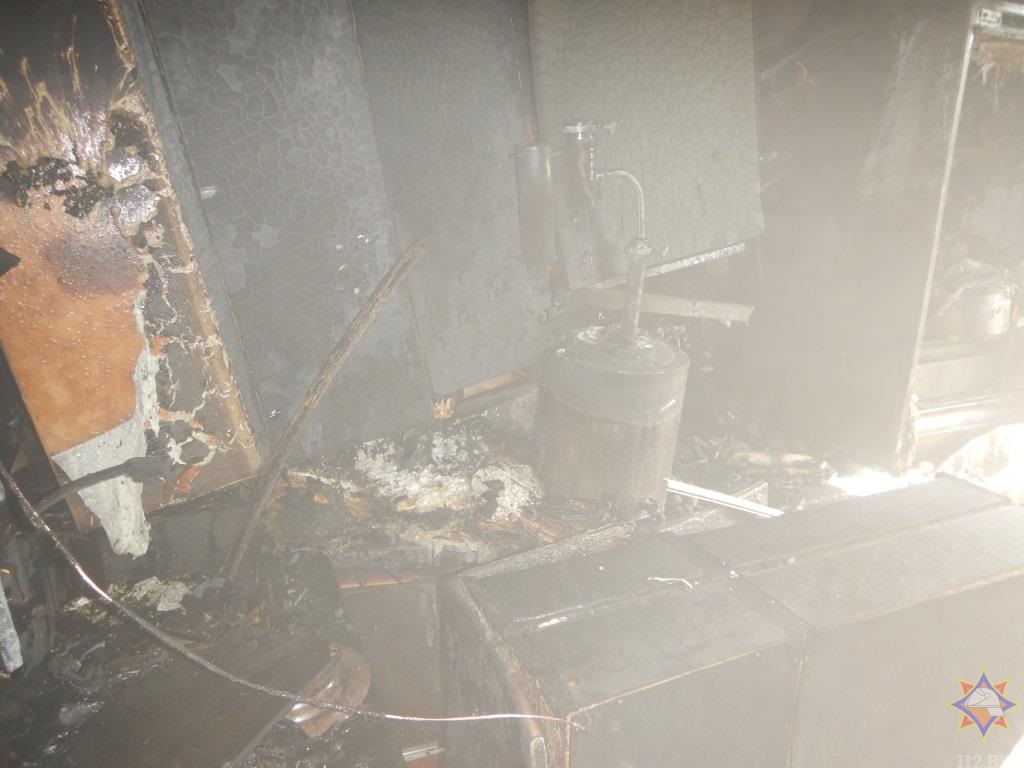 Пожар повредил потолок, закоптил стены и имущество на кухне. Эвакуация жильцов не потребовалась.