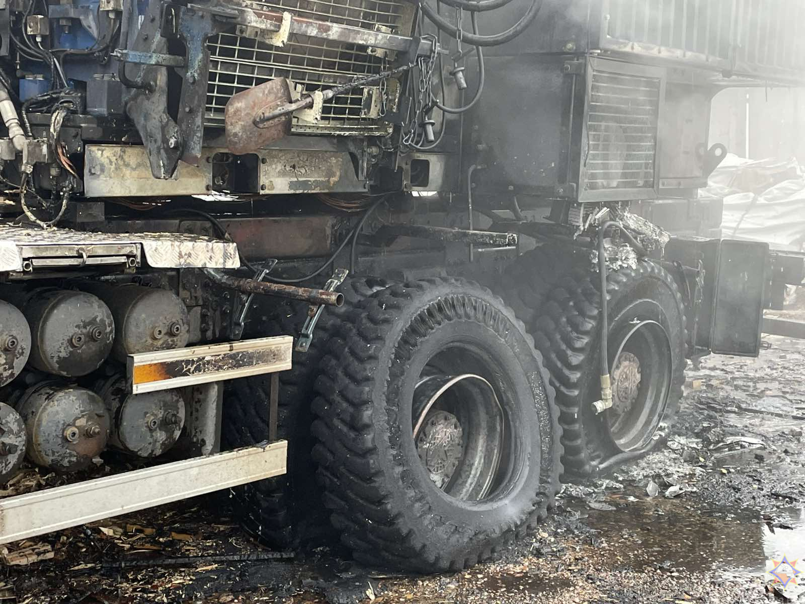 В результате случившегося повреждена дробильная установка, а также шасси автомобиля МАЗ, на котором она размещена. Причина произошедшего устанавливается.