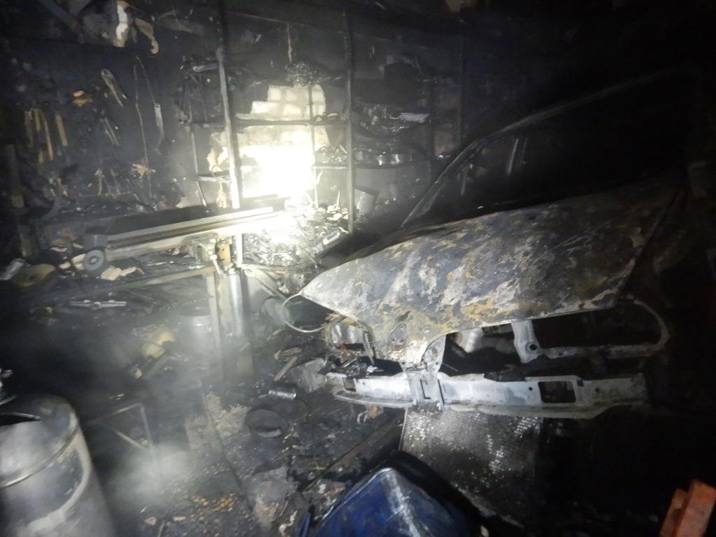 На улице возле горящего строения находился владелец. Он не пострадал. В результате произошедшего уничтожен автомобиль «Рено Сценик» 1998 года выпуска и имущество внутри гаража.