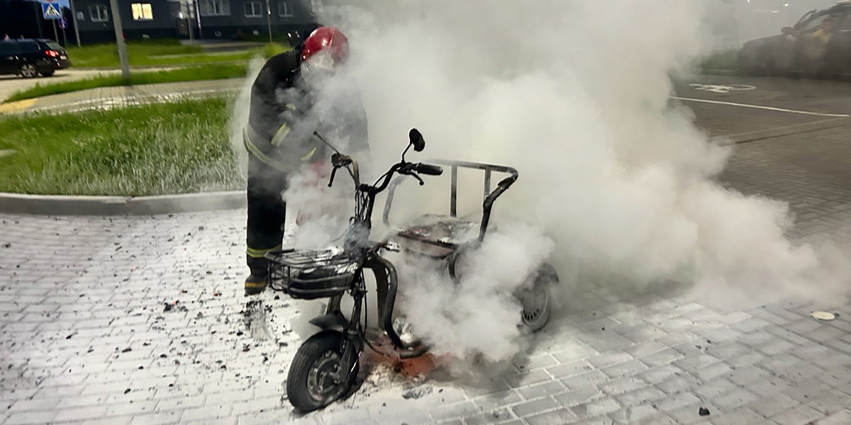 8 июня в 22:05 спасатели получили сообщение о возгорании электрического трицикла во дворе жилого дома на улице Гришина в Могилеве.