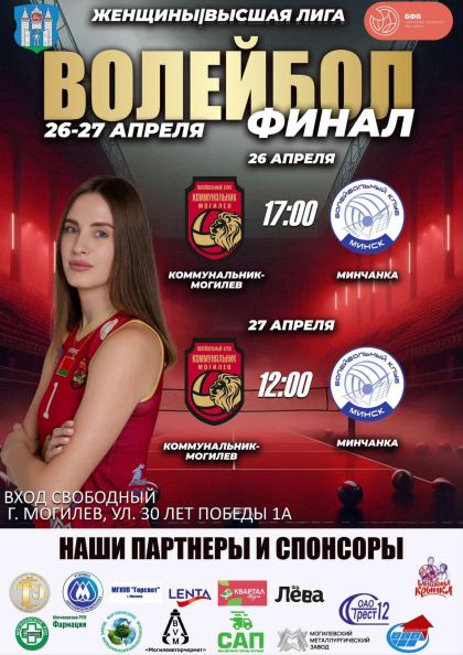 Финальная серия игр чемпионата Беларуси по волейболу среди женских команд стартует 26 апреля в Могилеве. За главные награды будут сражаться «Коммунальник-Могилев» и «Минчанка».