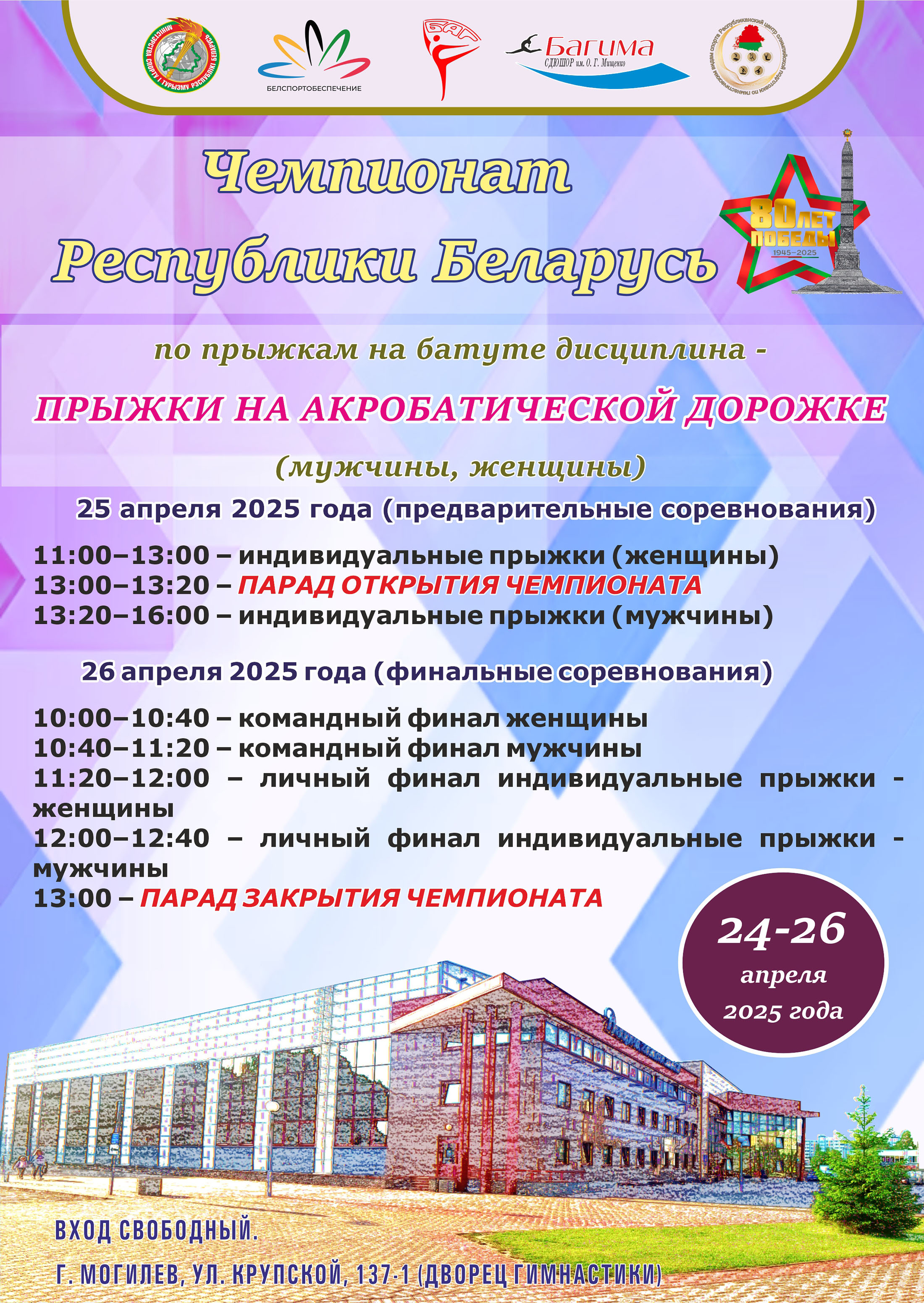 В Могилевской городской СДЮШОР «Багима» имени О.Г. Мищенко проходит чемпионат Беларуси по прыжкам на батуте (дисциплина — прыжки на акробатической дорожке). В нем принимают участие команды из Барановичей, Могилева, Витебска, Гомеля, Минска.
