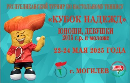 С 22 по 24 мая в СК «Олимпиец» пройдет республиканский турнир по настольному теннису «Кубок Надежд» среди юношей и девушек 2015 года рождения и моложе на призы Президентского спортивного клуба.