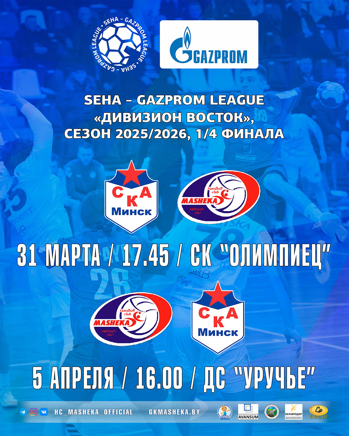 «Машека» проведет две встречи с минским СКА в рамках 1/4 финала SEHA – Gazprom League «Дивизион Восток».