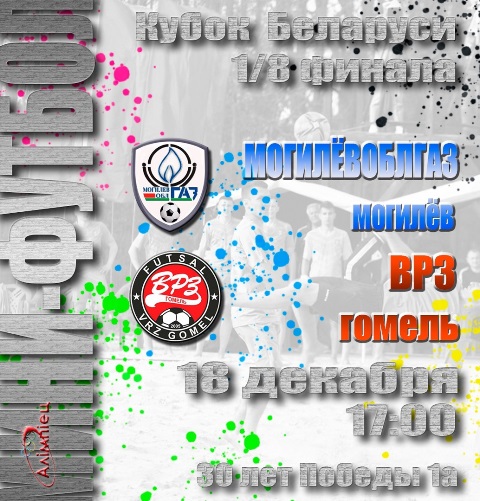 «Могилевоблгаз» встретится с гомельским ВРЗ в рамках 1/8 Кубка Беларуси по мини-футболу. Игра пройдет 18 декабря в СК «Олимпиец». Начало в 17:00. Вход бесплатный.