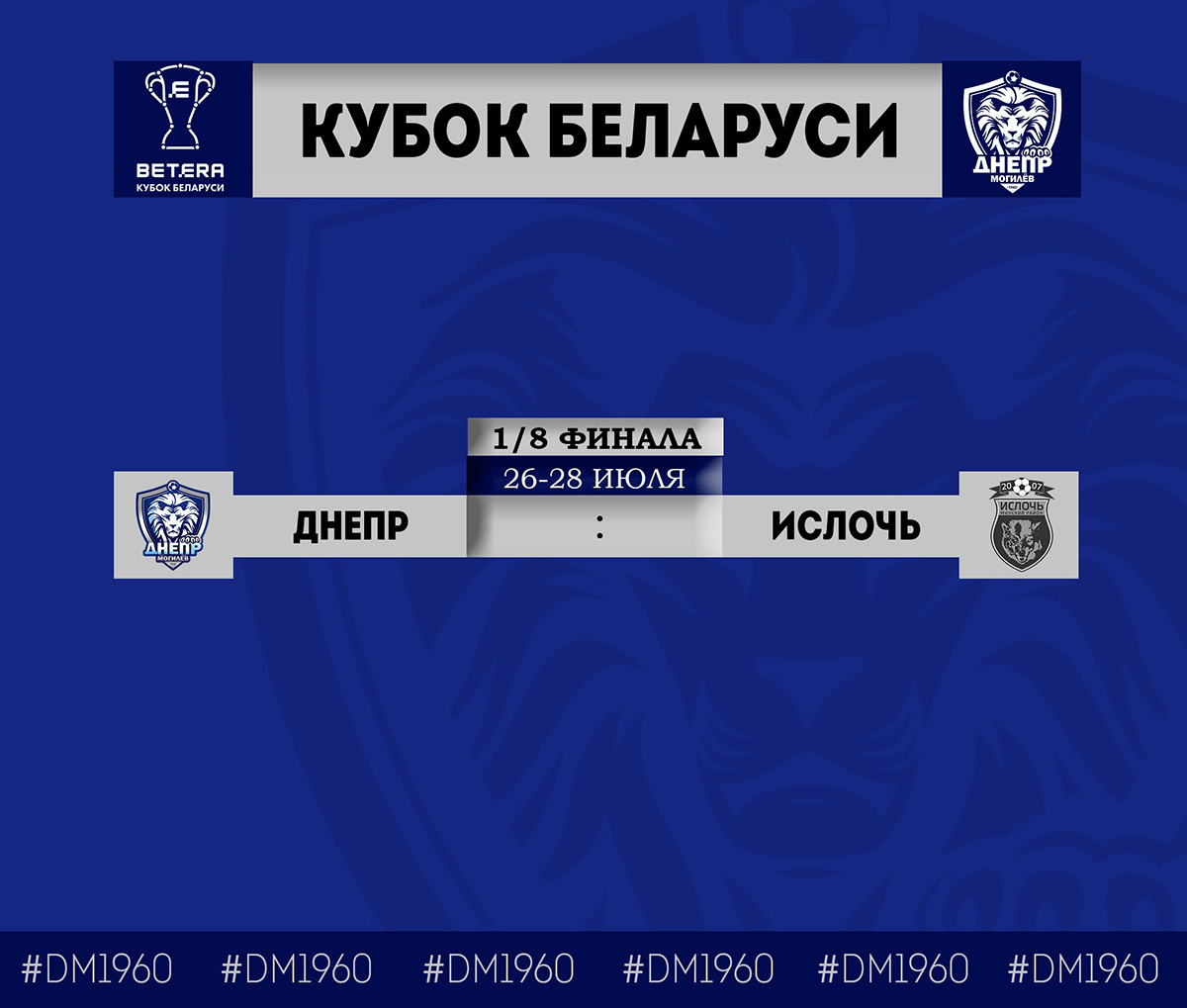 Жеребьевка пар 1/8 финала Кубка Беларуси прошла в минском Доме футбола. По ее итогам в рамках следующей кубковой встречи могилевский «Днепр» на своем поле примет команду «Ислочь».