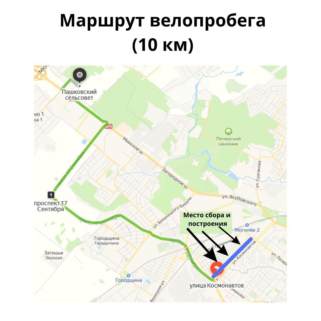 Местом сбора станет ул. Космонавтов (от пр-та 17 Сентября до ул. Лазаренко) в сторону площади Космонавтов — в 10:00. В 10:40 на этом участке дороги будет перекрыто движение транспортных средств и организовано построение колонны велосипедистов. Важно: движение на электросамокатах в колонне запрещено.
