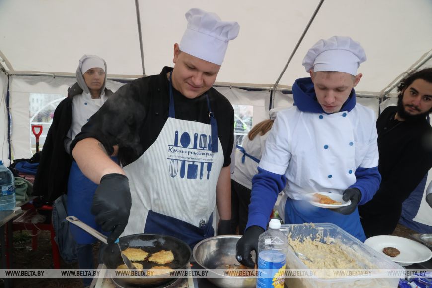 Неотъемлемой частью Могилевского международного марафона стала обширная культурно-развлекательная программа, которая развернулась на парковке у здания физкультурно-оздоровительно комплекса Н2О. Для хорошего настроения и времяпрепровождения здесь организована концертная программа и тематические локации. Участников забегов угощают бесплатной солдатской кашей и фирменными драниками от Белорусского государственного университета пищевых и химических технологий. Праздник удался!