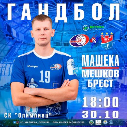 Гандбольный клуб «Машека» сегодня, 30 октября, проведет домашнюю встречу в рамках мужской Betera Суперлиги Беларуси.