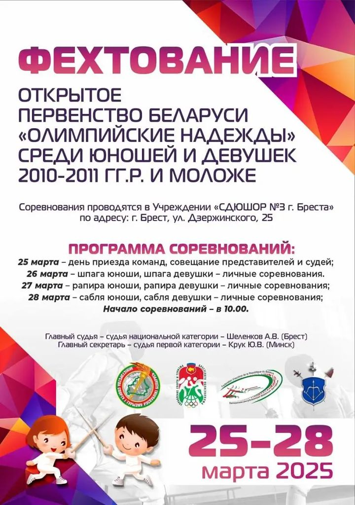 Открытое первенство Беларуси по фехтованию «Олимпийские надежды» среди юношей и девушек 2010-2011 годов рождения и моложе проходит 25-28 марта в Бресте.