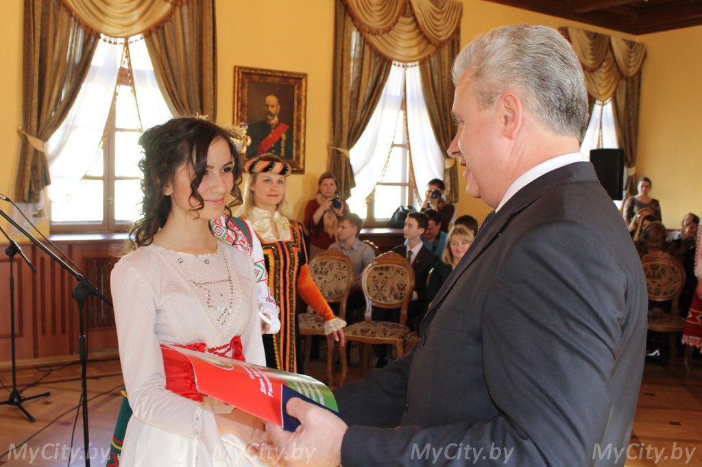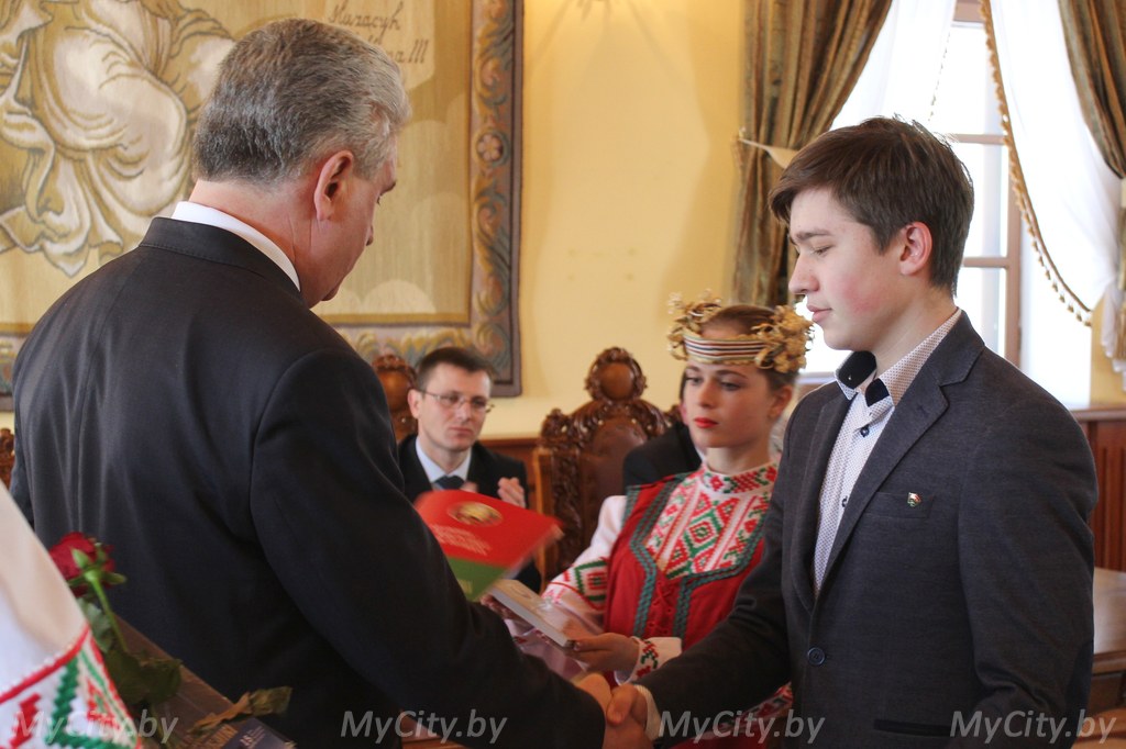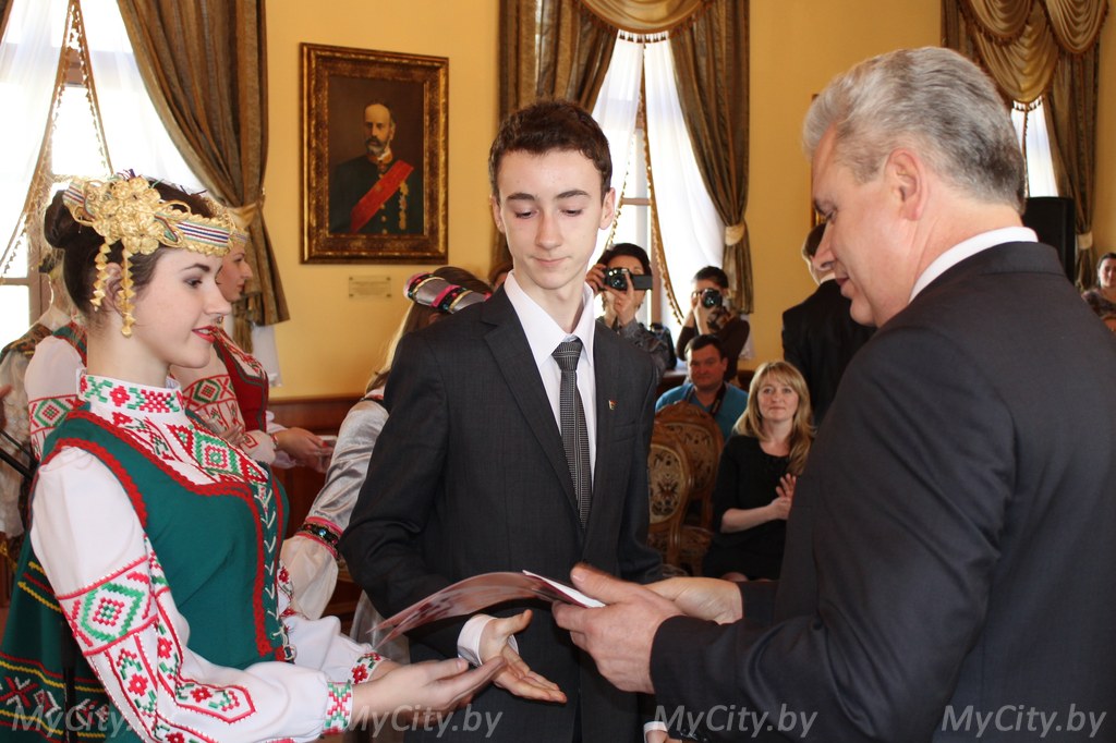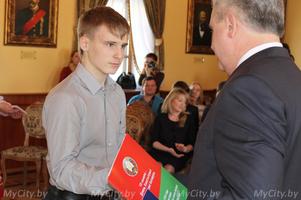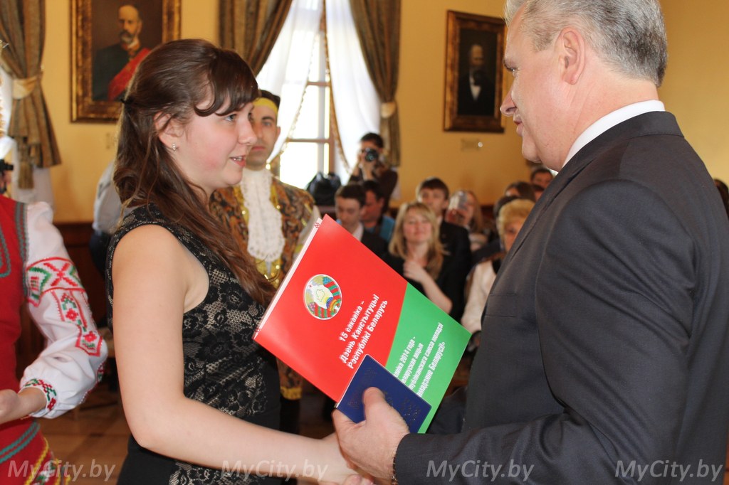 Накануне Дня Конституции юным могилевчанам вручили сегодня первые паспорта. Как рассказал корреспонденту сайта специалист по делам молодёжи управления идеологической работы, культуры и по делам молодёжи Моггорисполкома Вера Богайчук, акции «Мы – граждане Беларуси!» исполнилось ровно 10 лет. Один из важнейших документов из рук руководства города получили 23 лучших представителя молодёжи - из числа победителей предметных олимпиад, конкурсов, соревнований, отличников учёбы и др. Тем самым представители власти хотели подчеркнуть, насколько юные таланты важны для страны. Кроме того, юношам и девушкам вручили книги «Я - гражданин Республики Беларусь», конституции и цветы.