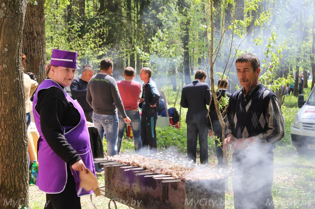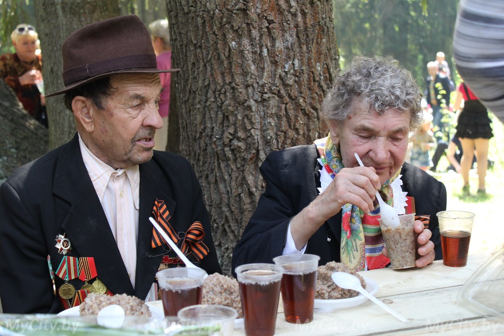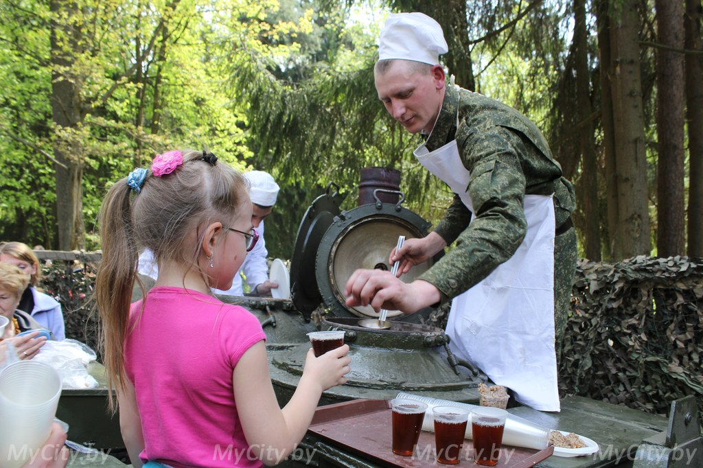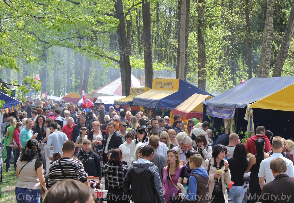 Вдоль пешеходных дорожек лесопарка тянулись стройные ряды ярморочных палаток. Могилевчане покупали здесь шашлыки, сладкую вату, выпечку, напитки, а также разнообразные украшения, поделки и воздушные шарики. За «солдатской кашей» и чаем здесь выстроилась целая очередь.