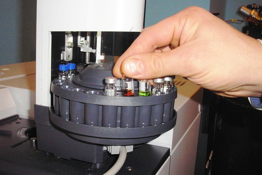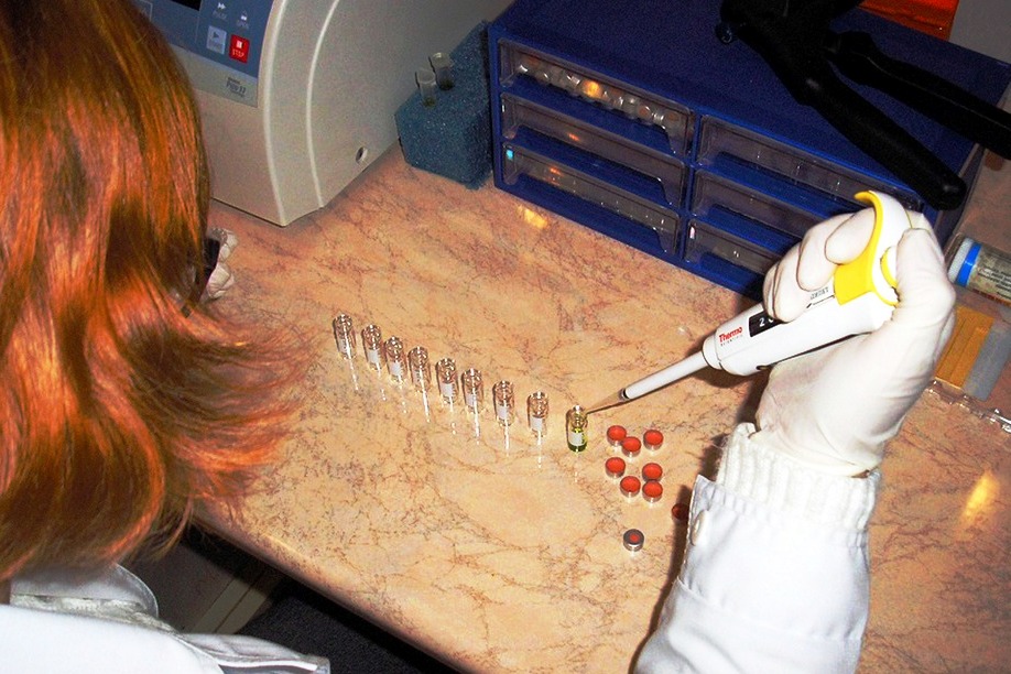 После эксперт достает пробирки из центрифуги и с помощью микропипетки извлекает в виалу (небольшой стеклянный флакон) полученный экстракт, закрывает пробкой и закрепляет ее с помощью специального прибора. Когда объект исследования превратился в образец, он готов к исследованию на хромато-массе. Еженедельно отдел делает порядка 20 экспертиз, большинство из которых приходится на спайсы.