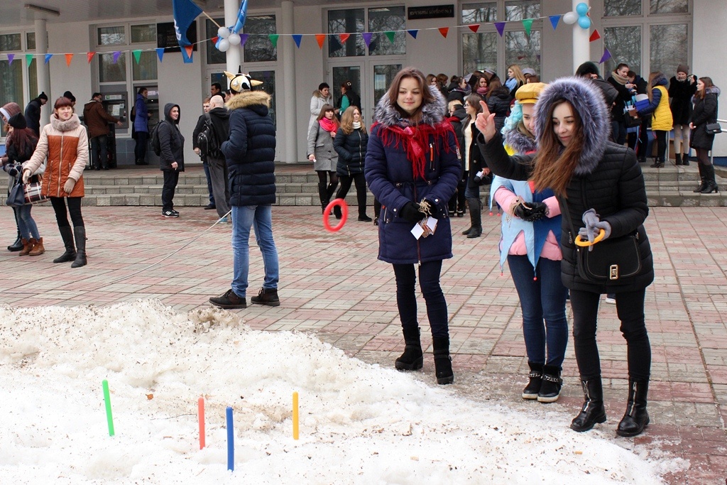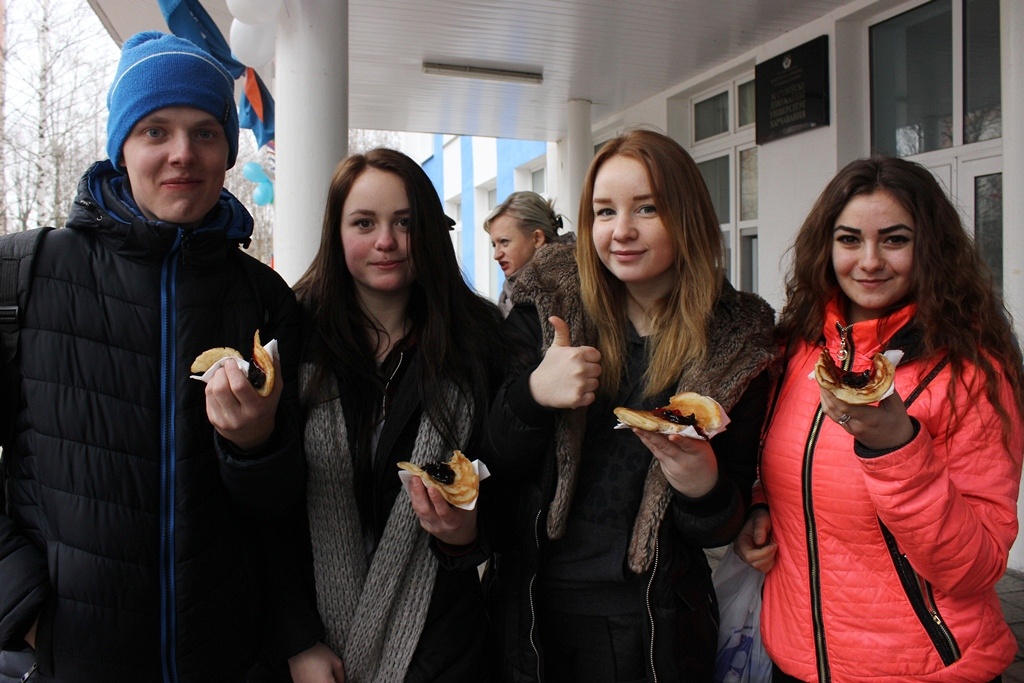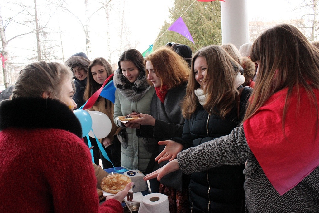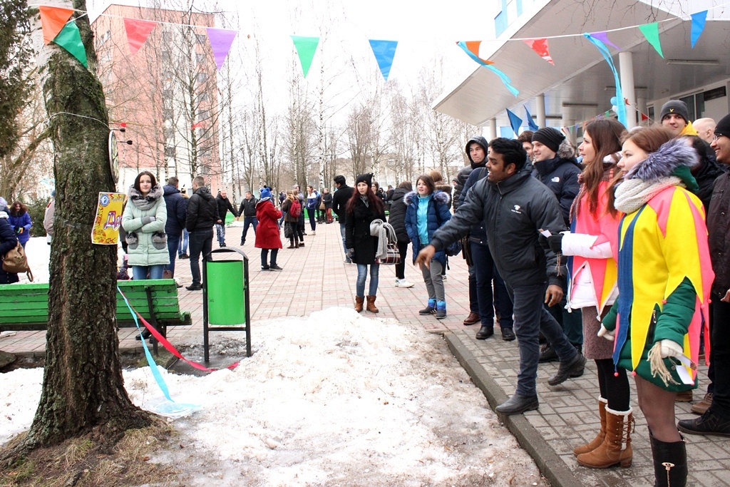 Эту Масленицу студенты провели сытно, беззаботно и весело — с зажигательной музыкой, забавными скоморохами и интересными конкурсами. Каждый из присутствующих попробовал свои силы хотя бы на одной игровой площадке. Так, молодые люди соревновались в жиме гири, дрались подушками, играли в дартс и кегли, прыгали через скакалку.