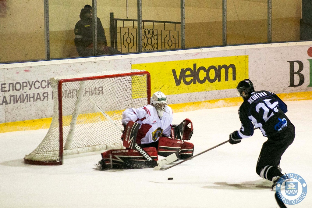 Могилевчане с первых минут попали под каток. Гол пропустила уже первая смена — 1:0. Использовав череду удалений соперника, хозяева удвоили перевес — 2:0. Дублем отметился Ментюк. После этого игра несколько успокоилась, что не помешало первой пятёрке новополочан отличиться ещё раз. Многоходовая комбинация завершилась точным броском Гавриленко — 3:0. Закончился стартовый период для «химиков» столь же успешно, как и начинался. За несколько секунд до перерыва на пятачке в нужное время оказался Коваленя и реализовал большинство, использовав очередное удаление в составе приезжей дружины — 4:0.