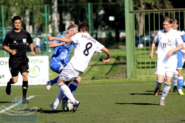 Ещё один раз мяч побывал в воротах Марии Свидунович на исходе первого получаса игры. Дубль оформила Гудченко.