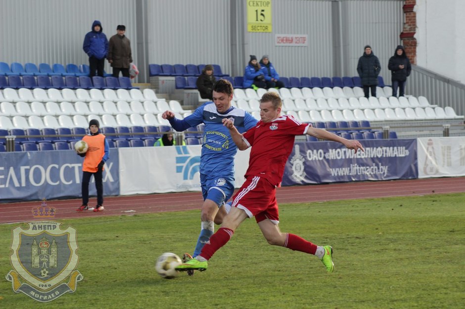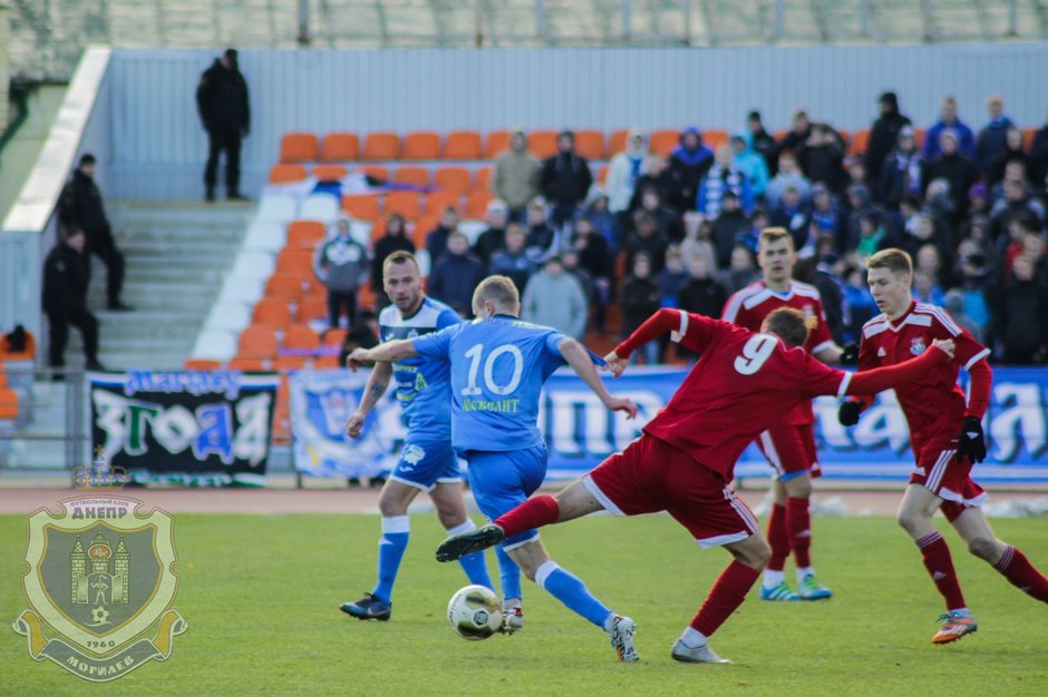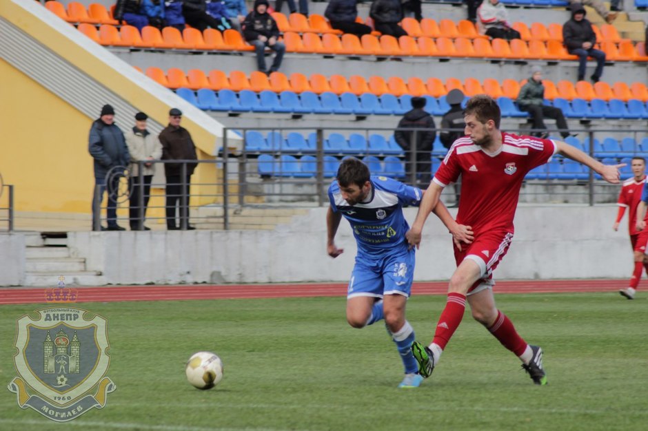 Начало матча выдалось не самым интересным. Команды играли практически без ворот и особых скоростей не показывали, сообщает пресс-служба «Днепра». В конце получаса игры гости смогли отправить мяч в сетку ворот, однако боковой арбитр зафиксировал офсайд. Буквально тут же могилевчане забили уже легитимный мяч. Илья Галюза оказался первым на подборе после углового и с линии штрафной точным ударом отправил мяч в дальний угол ворот.