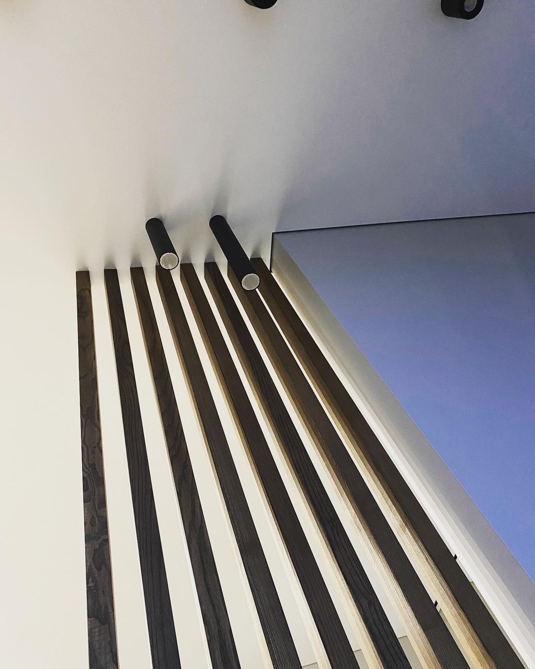 Легкие алюминиевые профили, которые позволяют изготавливать криволинейные участки в горизонтальной и вертикальной плоскостях. Световые линии как основной источник света! Использованы такие решения: