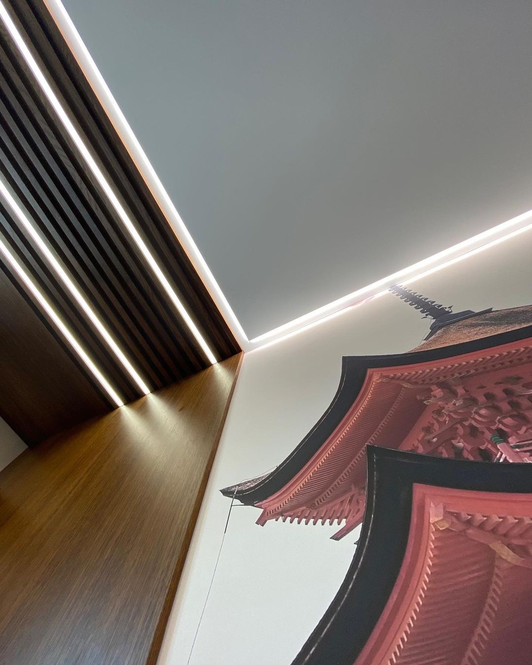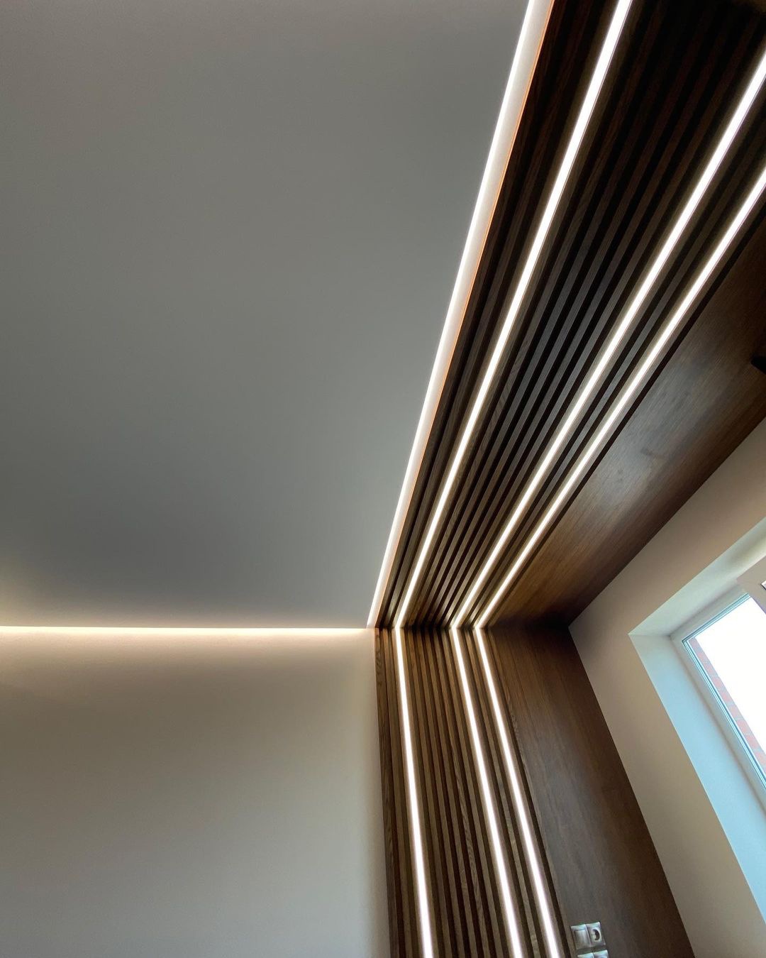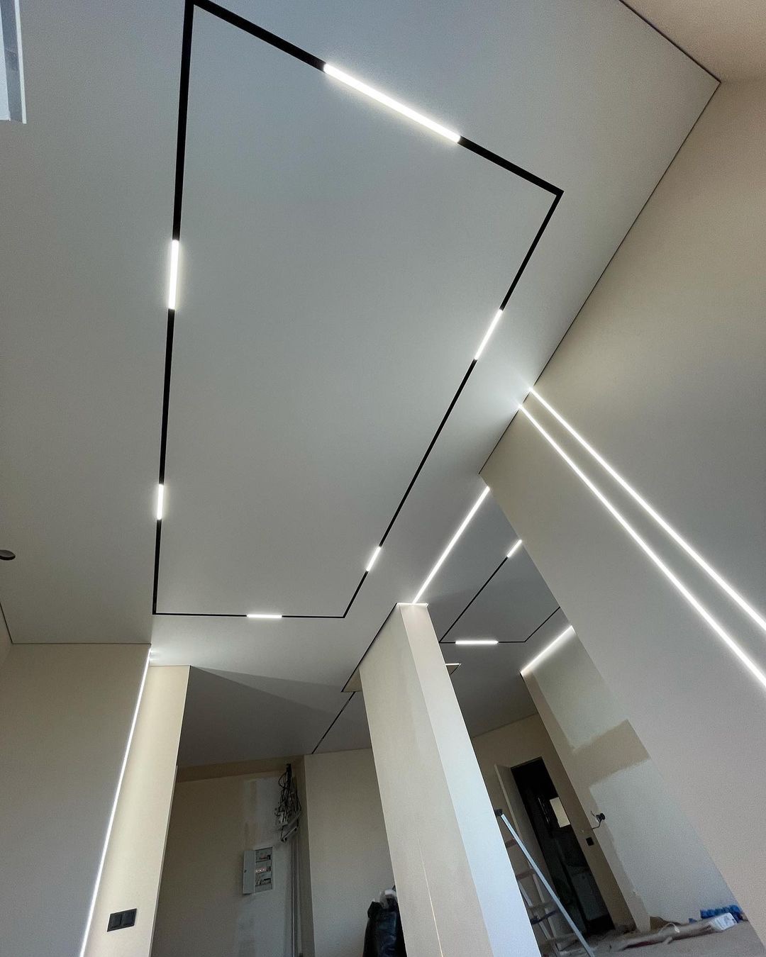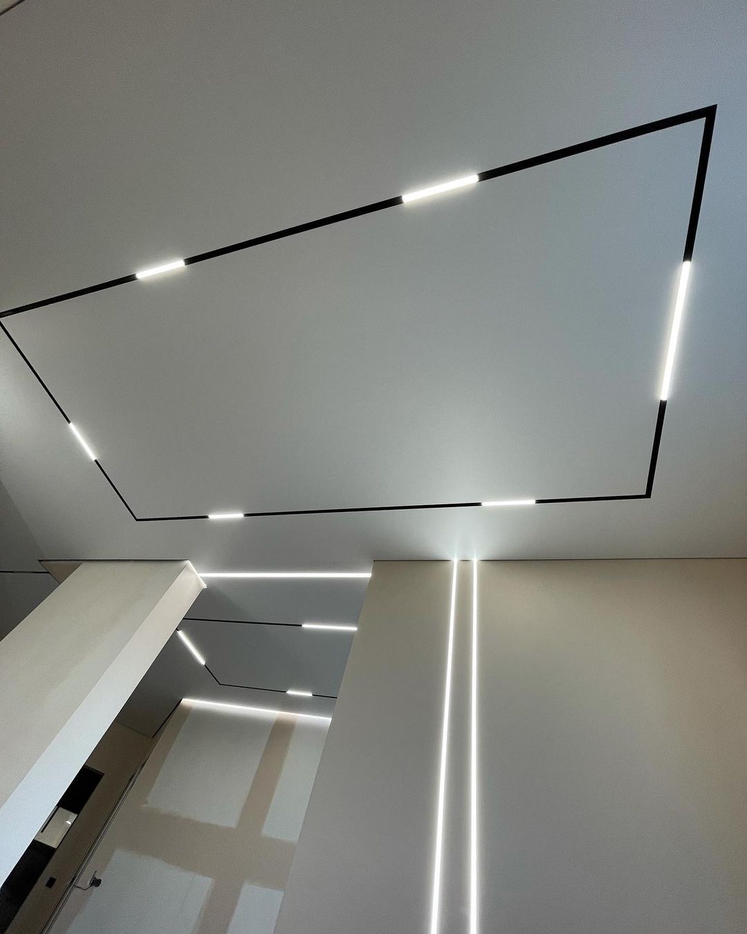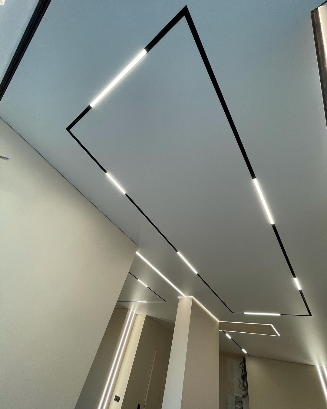 Это безщелевая система световых линий без рассеивателей и маскировочной ленты. Современное эстетическое решение для любых натяжных потолков.