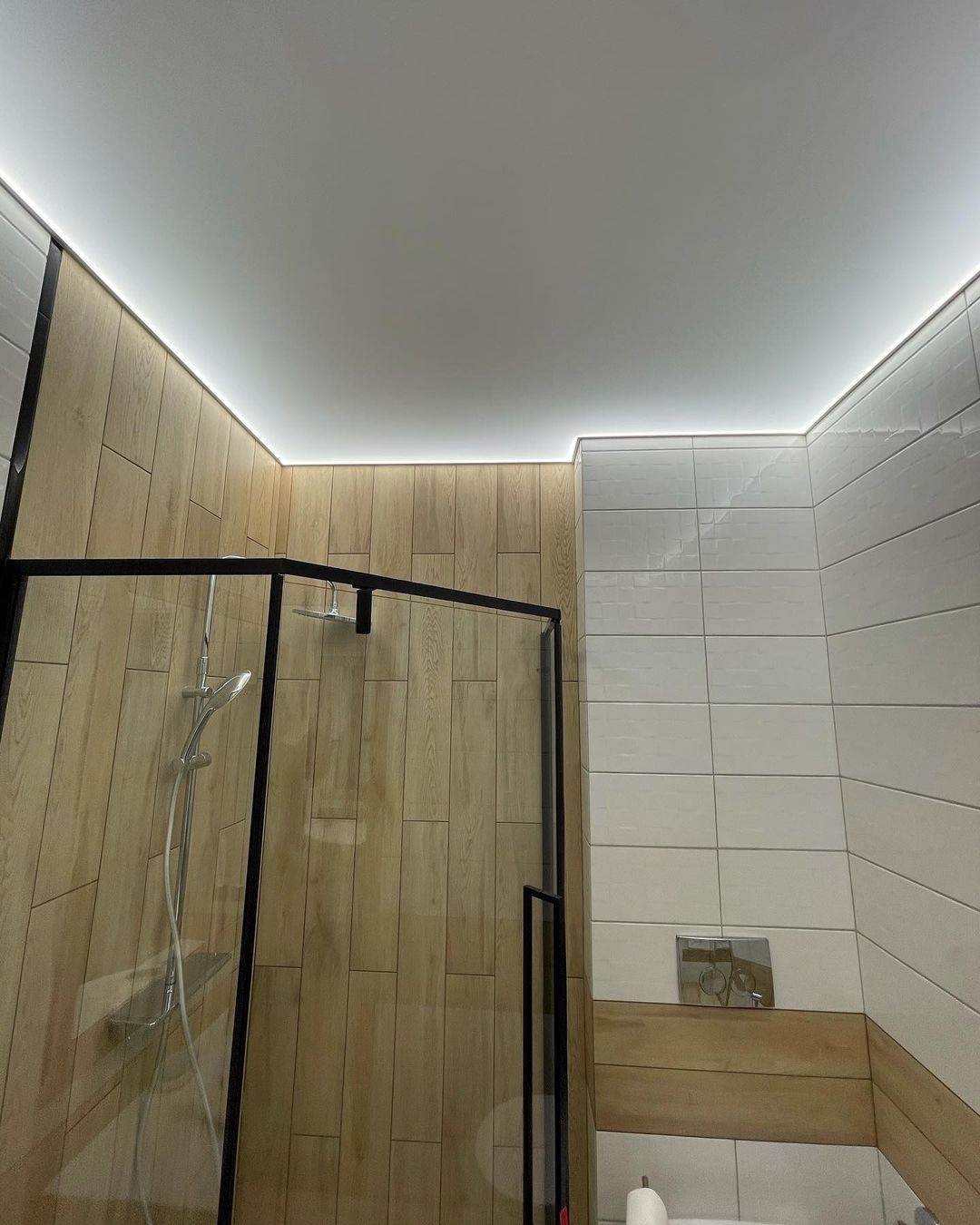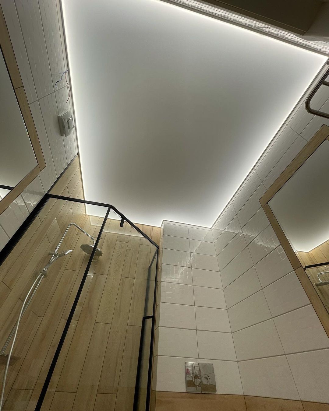 СВЕТЯЩИЙСЯ НАТЯЖНОЙ ПОТОЛОК В ВАННОЙ